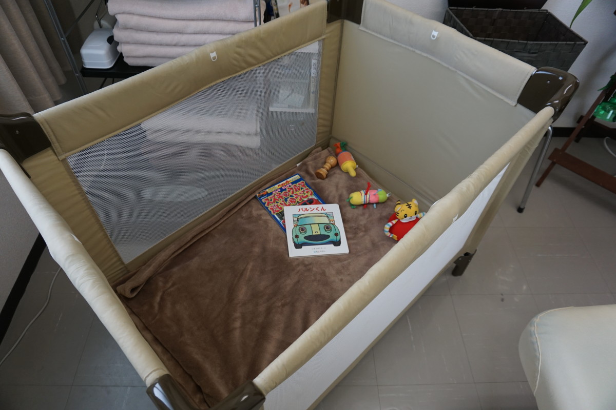 0歳から2歳まで利用できるプレイヤード(簡易的なベビーサークル)あり