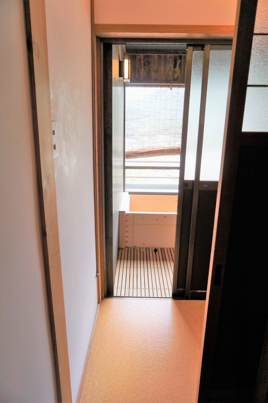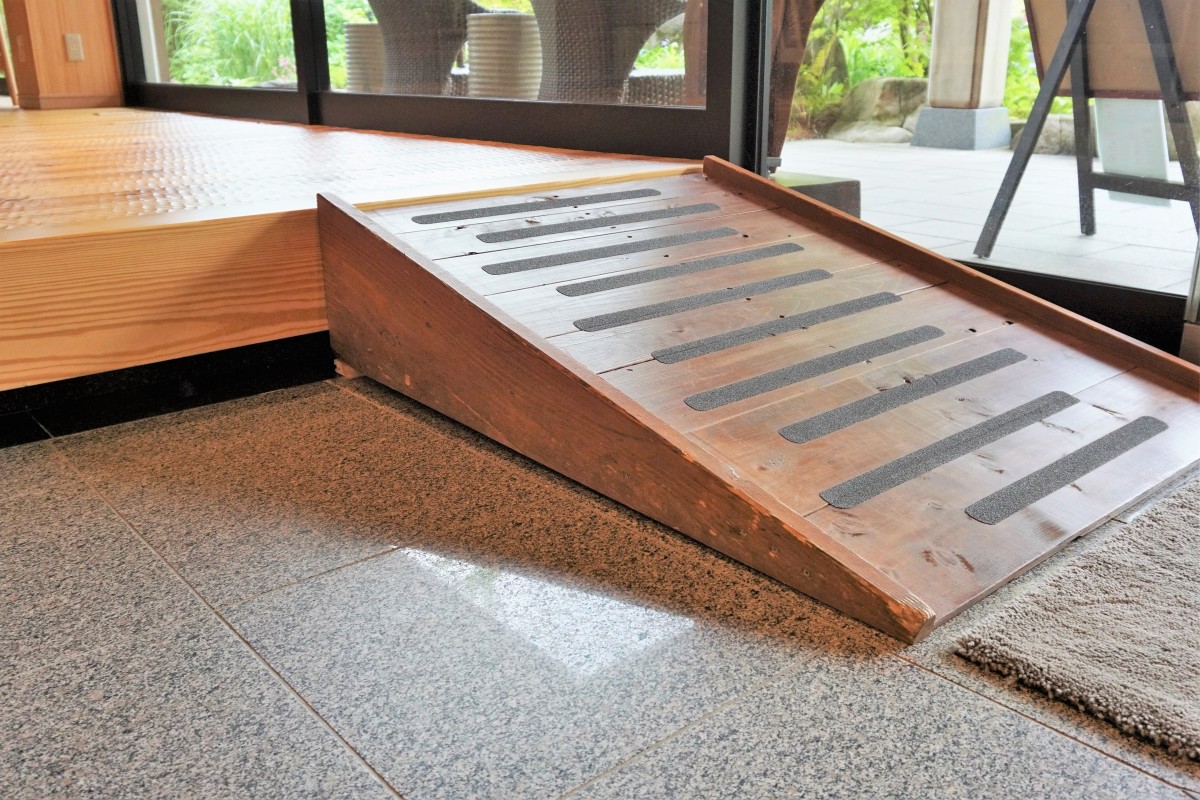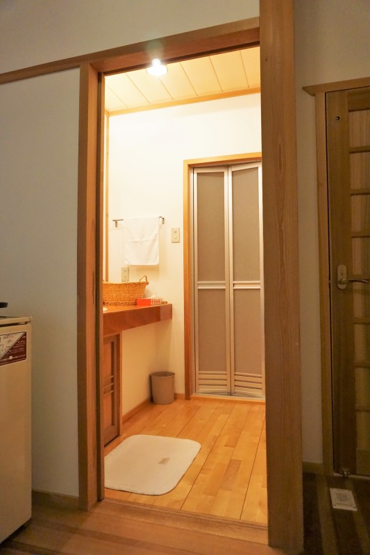 離れはユニバーサルデザイン客室ではございませんが、入り口とトイレに段差がある以外はフラットなつくりです。