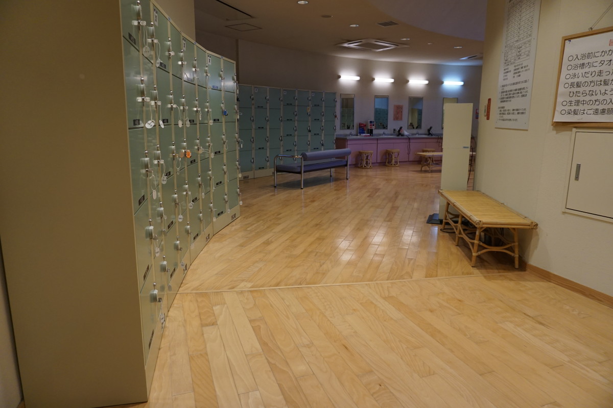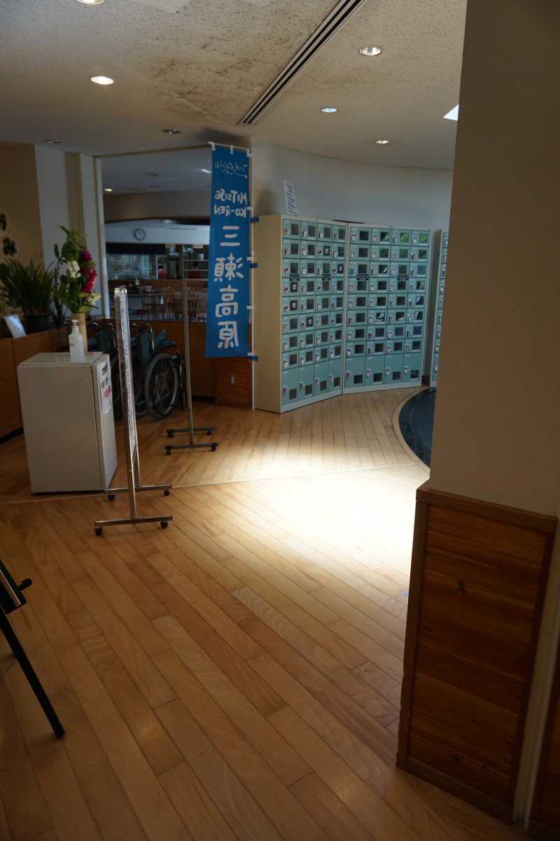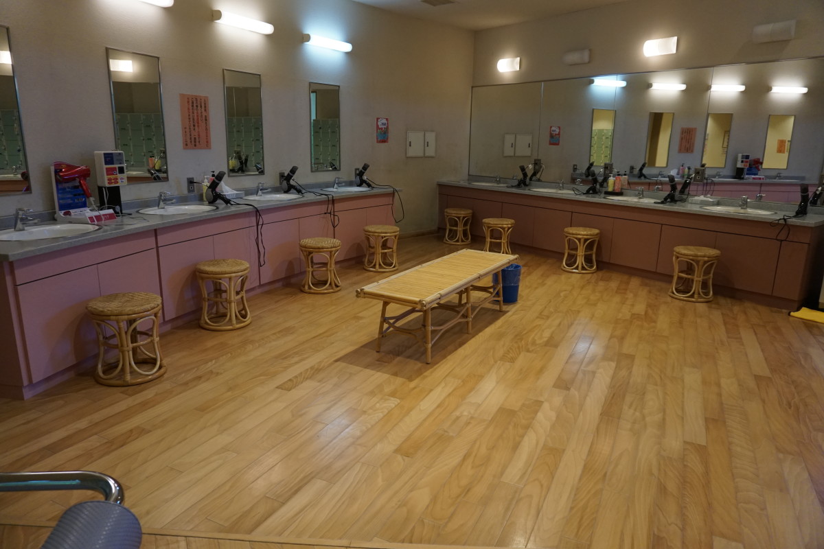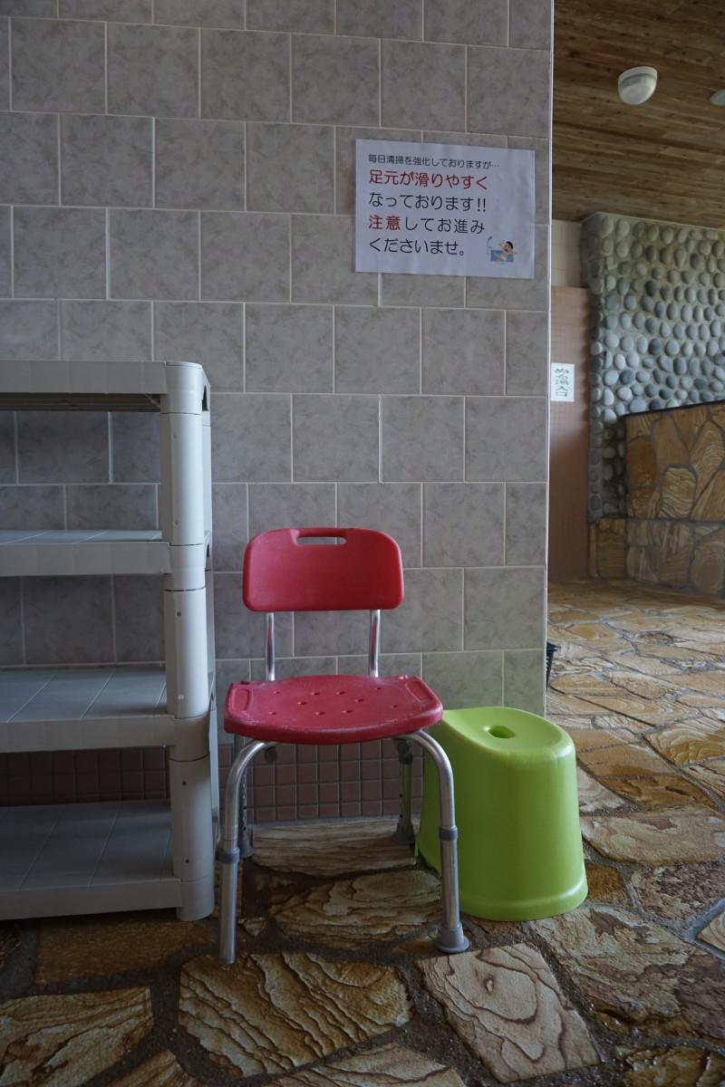 大浴場1にサウナへ向かうところ(1段)、露天風呂へ向かうところ(2段)段差あり