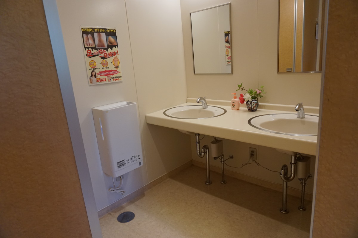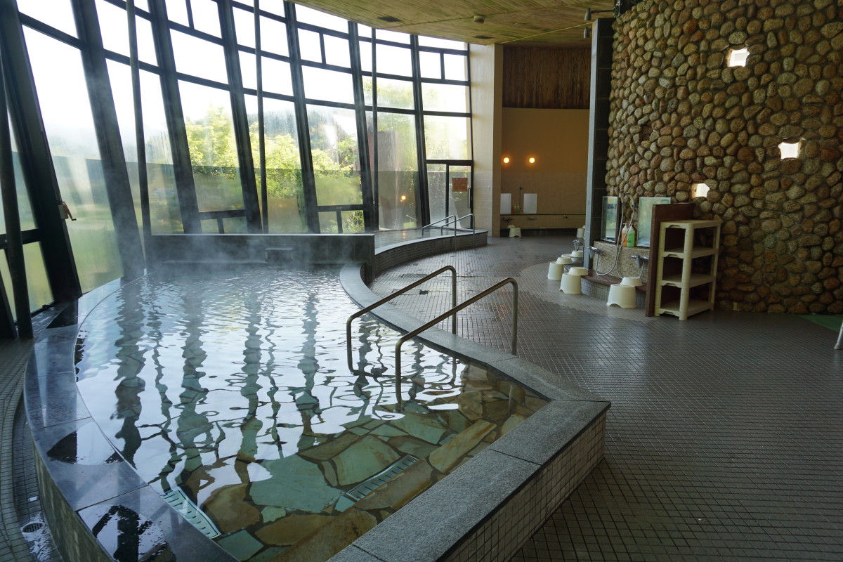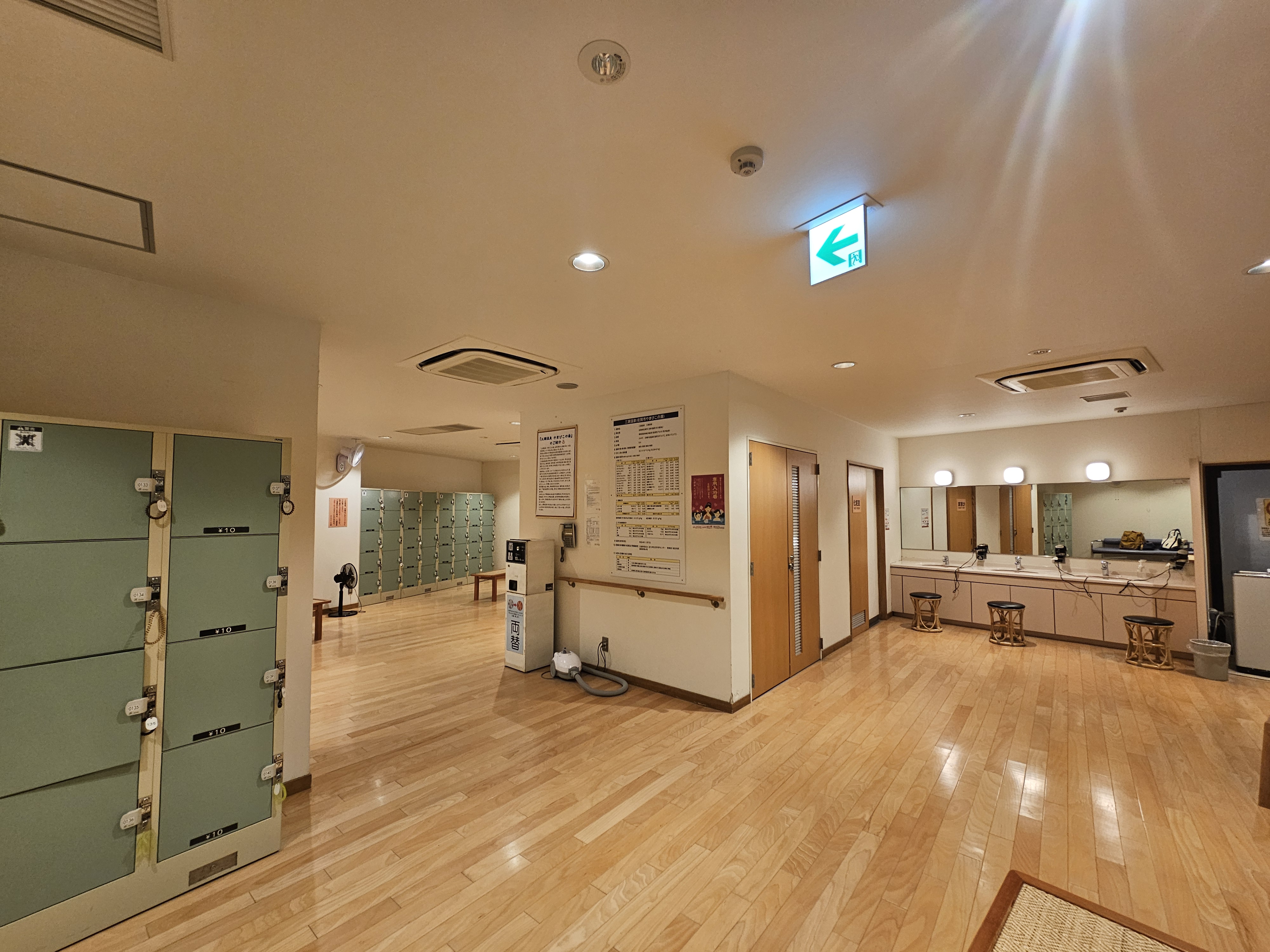 大浴場1にサウナへ向かうところ(1段)、露天風呂へ向かうところ(2段)段差あり