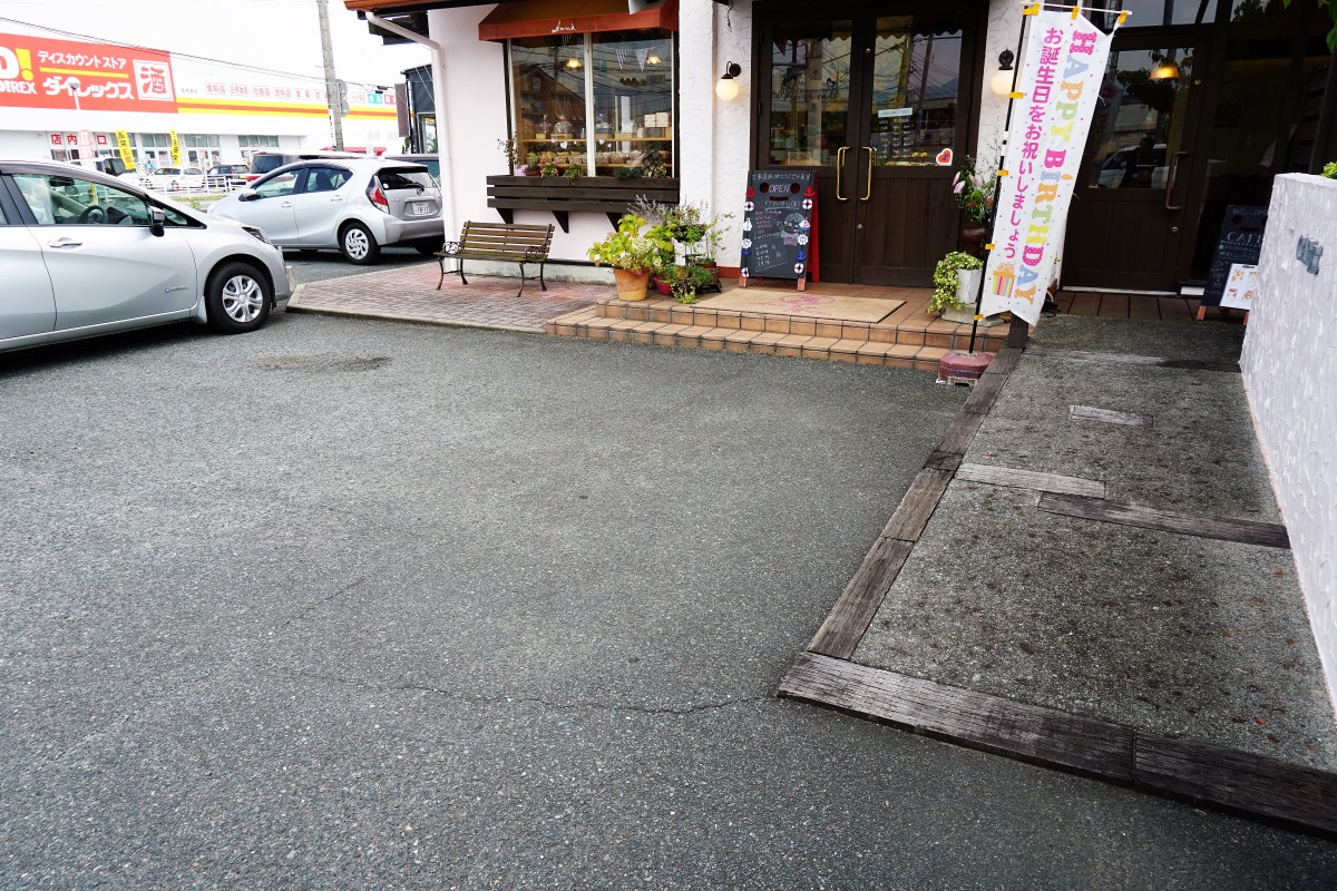 カフェスペースに直接入れる入り口の前にある緩やかなスロープを利用して入店できます。