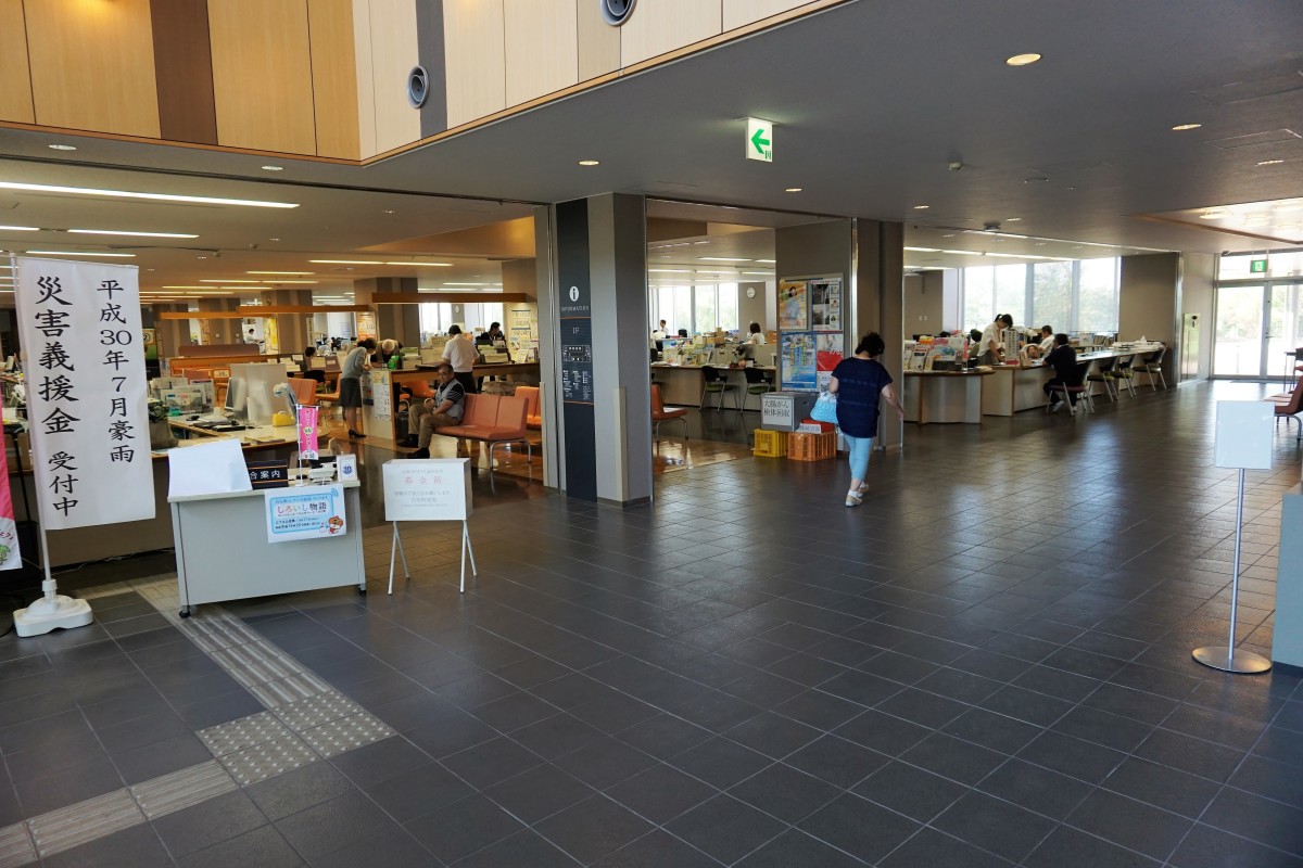 3階建ての庁舎です。1階には広いロビーがあり、庁舎を利用されない方の休憩等も可能です。