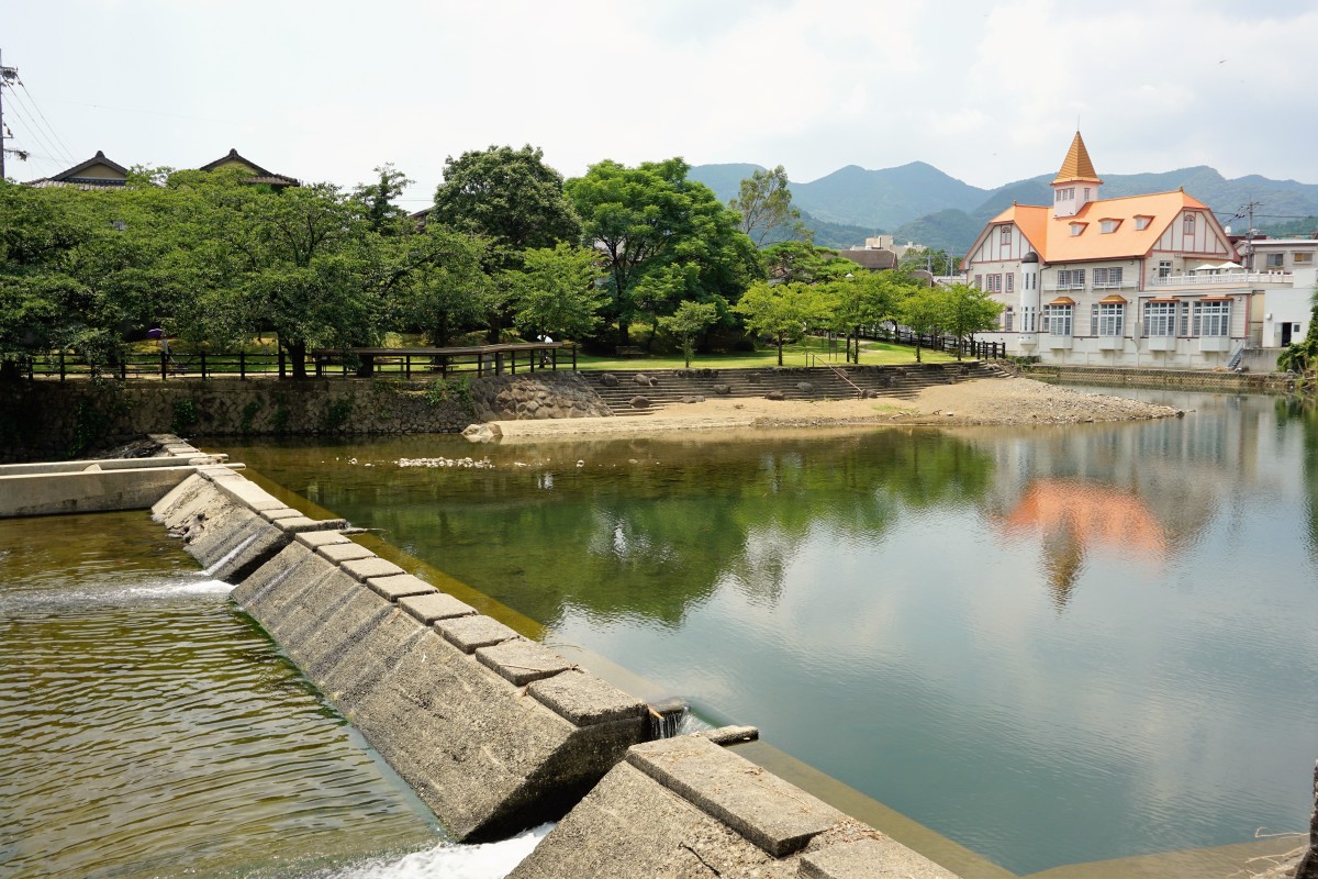 嬉野川沿い、シーボルトの湯のそばにある「まちのリビング」嬉の温泉公園です。
