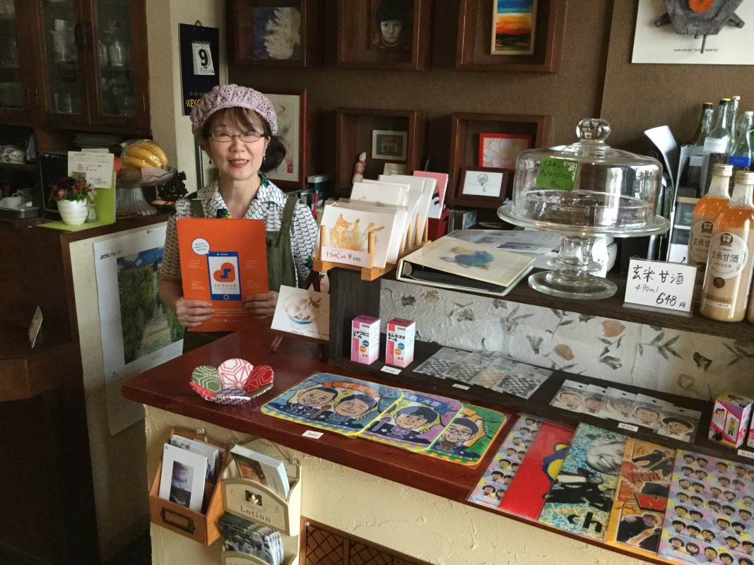 ケーキや日曜と木曜限定の天然酵母のパンなどのテイクアウトも可能で、吉本グッズも取り扱っております。