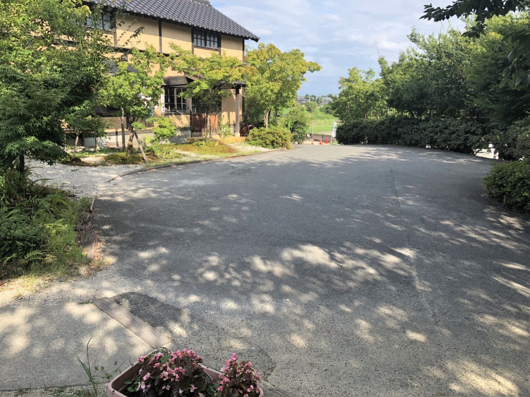 敷地南側に10台ほど、敷地北側に観光バスも停めることのできる砂利の広い駐車場あり