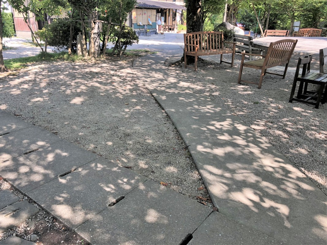 敷地内は砂利や坂があり、1~3段の段差あり