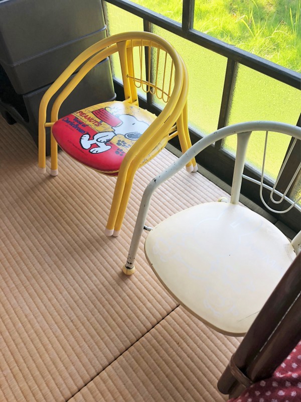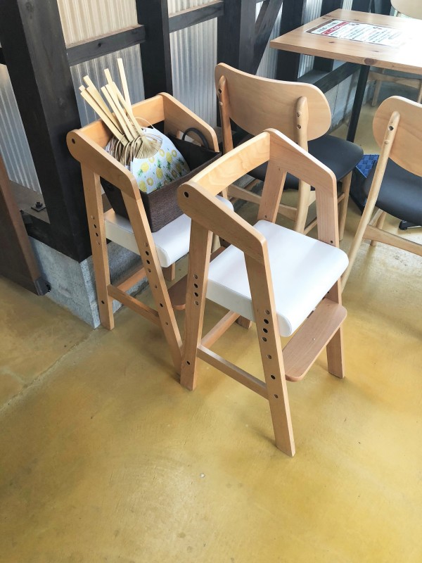 お子さま用スプーンとフォーク、いす、あり