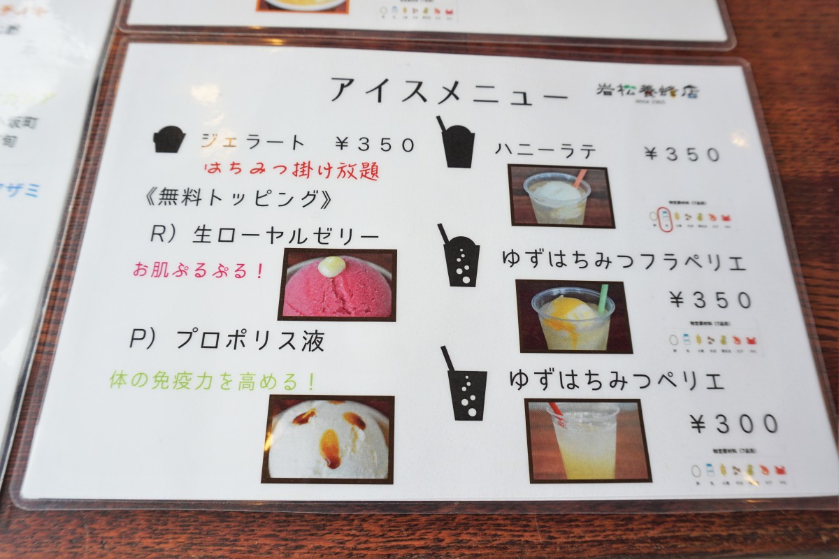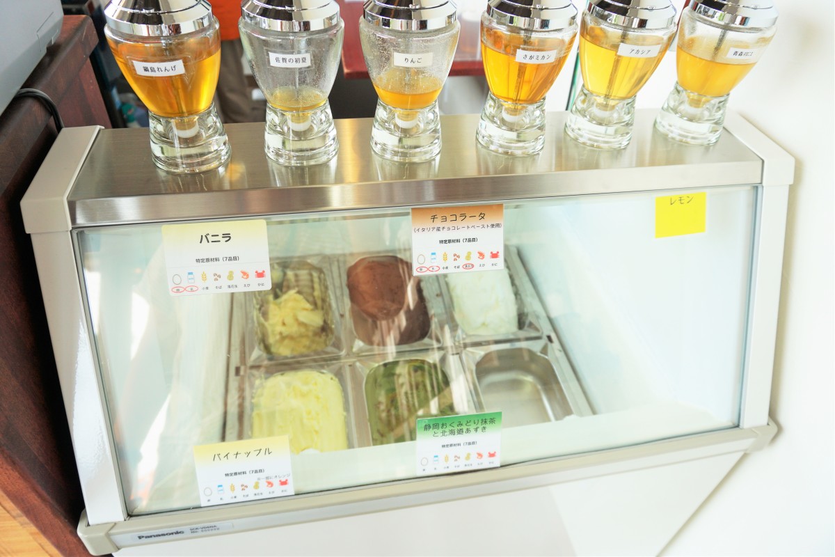 店内ではジェラートやハニーラテなどをご注文いただくと、当店自慢のハチミツをかけ放題でお楽しみいただけます。