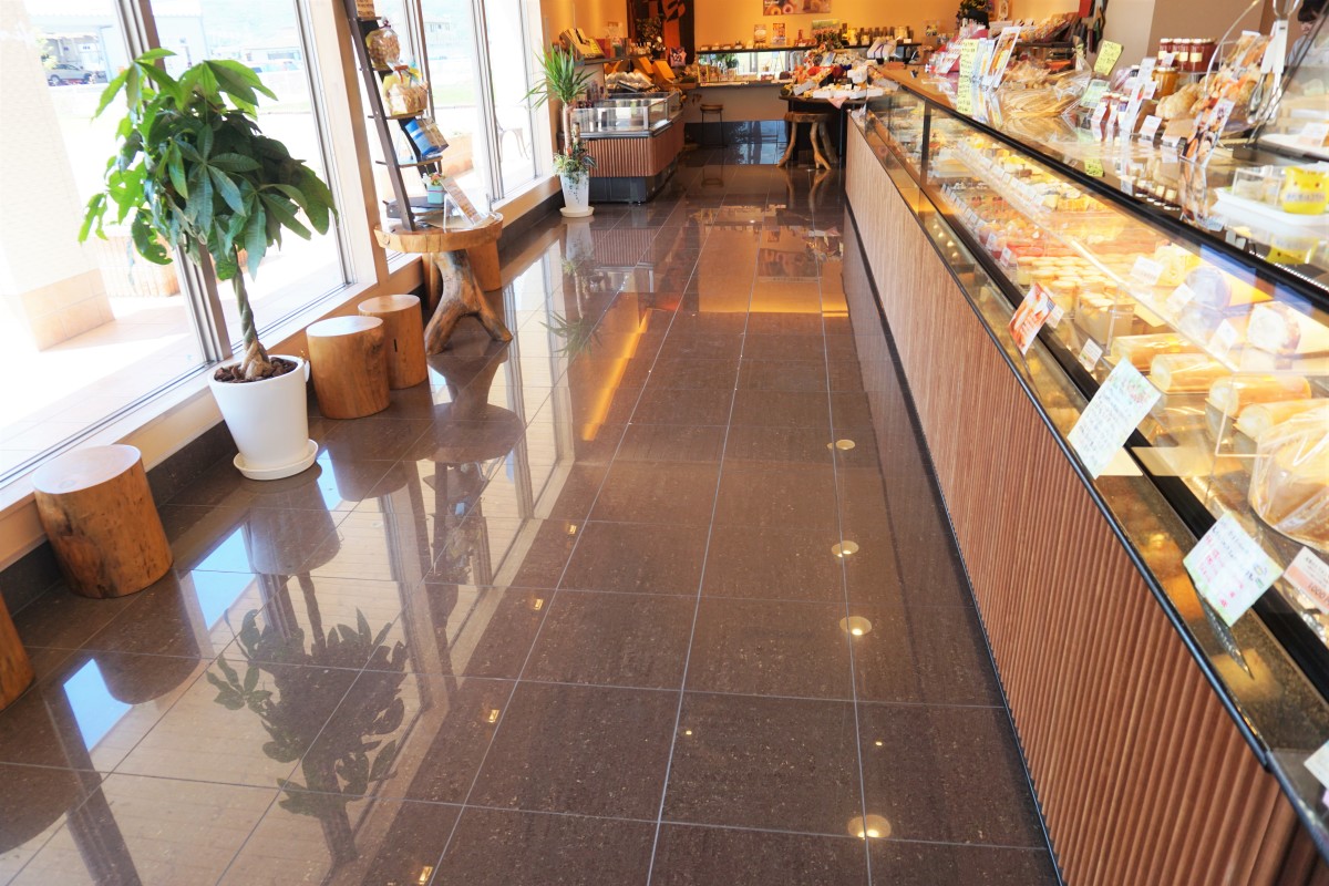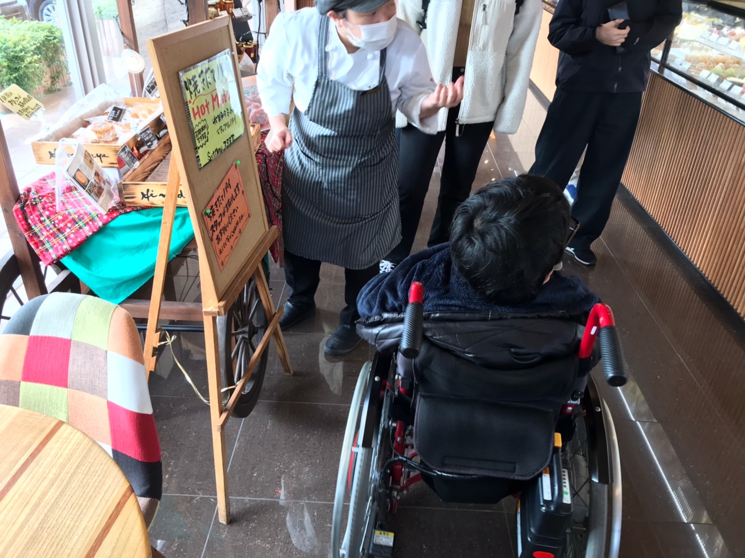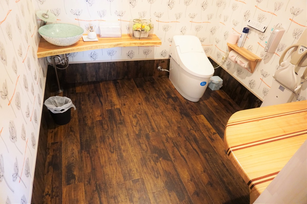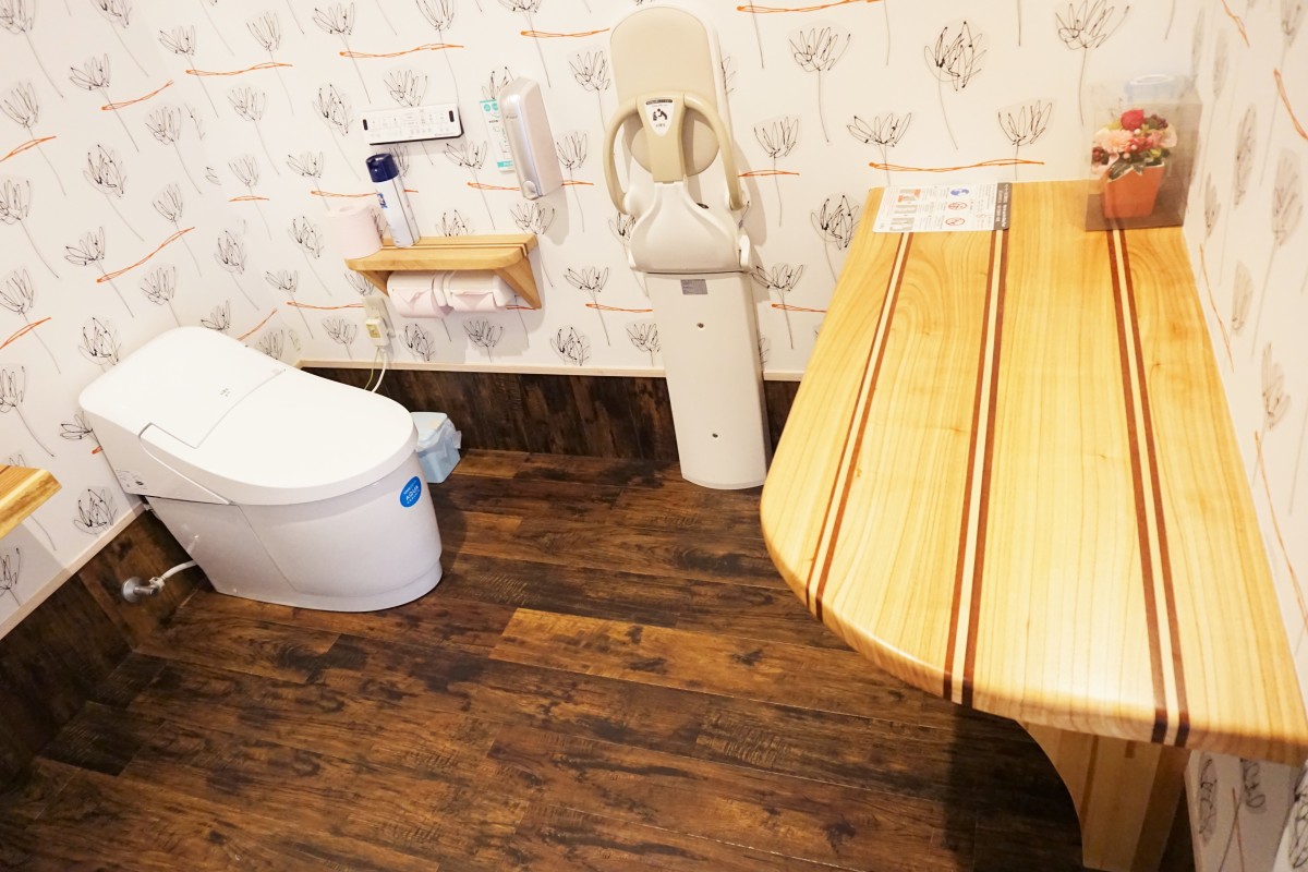 2017.11月にカフェ併設でお年寄りから赤ちゃんまでゆっくり過ごしていただけるお店へ新しく生まれ変わりました。トイレも広く、ベビーキープやオムツ交換台もあり、車いすの方も身障者駐車場からお庭の中を通るゆるやかなスロープを使って入店できます。