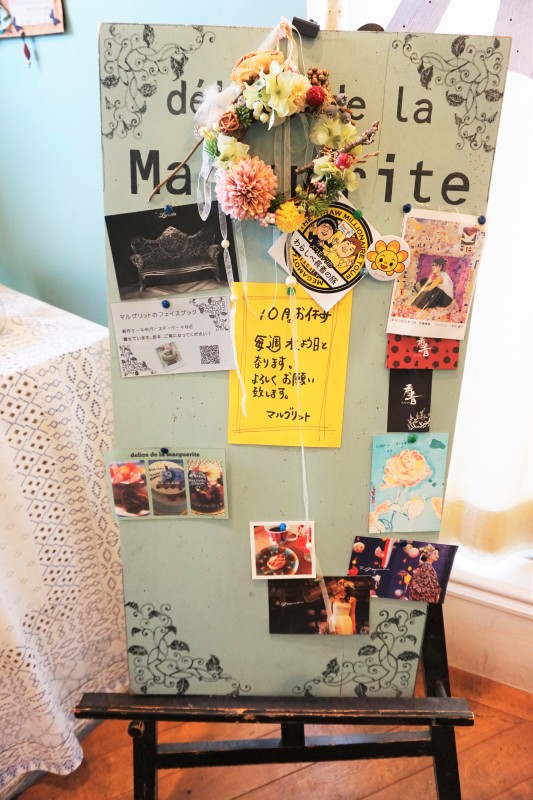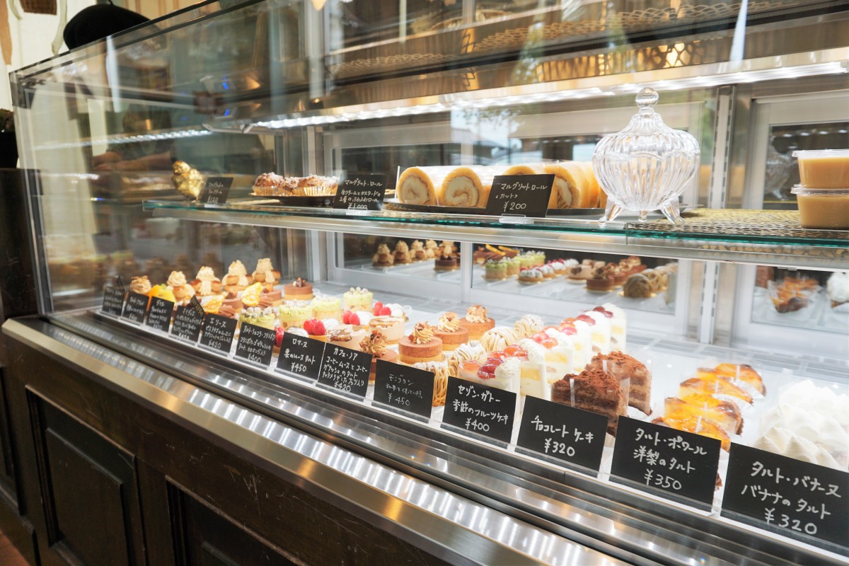 フランスの洋菓子店に来たような雰囲気の店内です。並ぶケーキは食感や季節感、色合いやフォルムなど細部に至るまでこだわって思いを込めて作っています。お子様からご年配の方まで、ぜひマルグリットの「本格的」なケーキをお楽しみください。