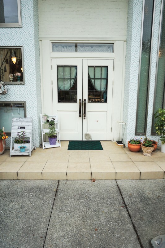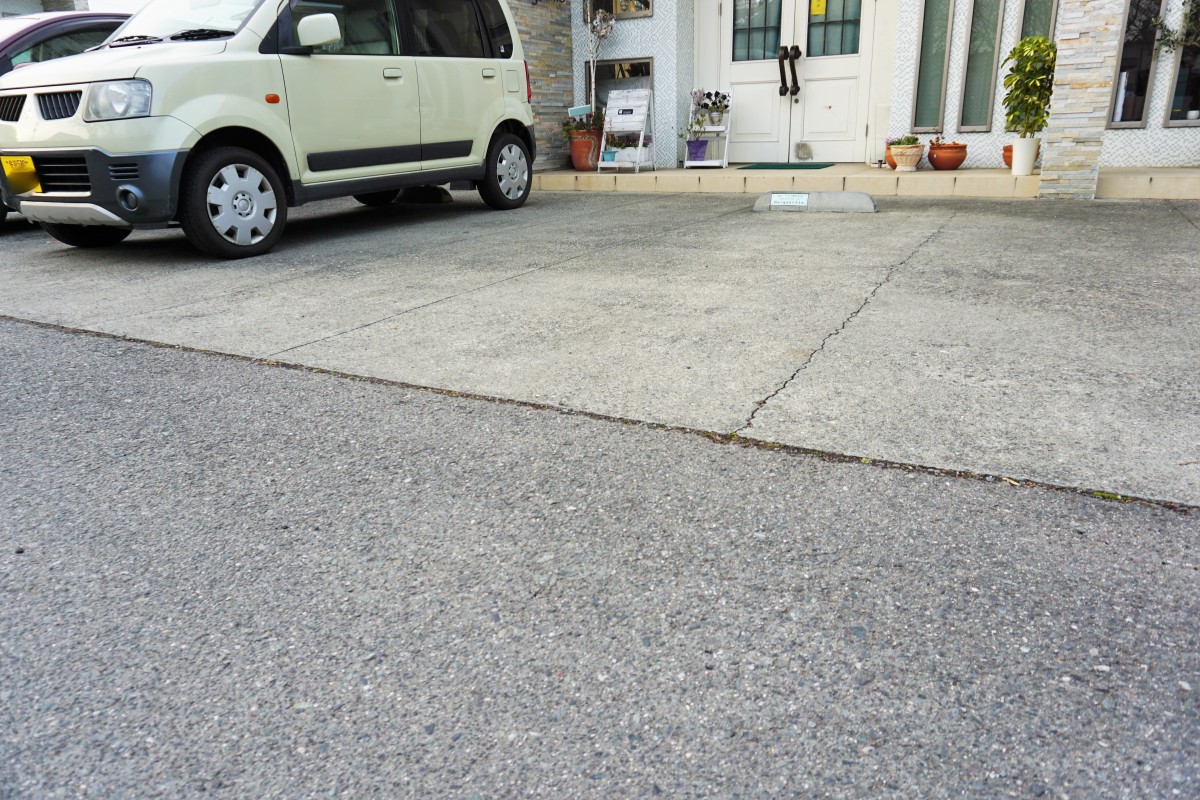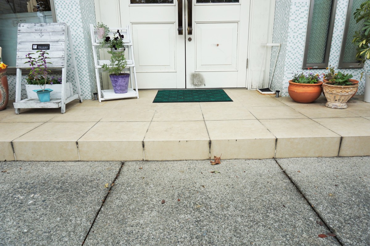 駐車場は目の前に3台あり、入り口に1段段差があります。扉が大きく重たいので、ベビーカーや車椅子でのご来店の場合などはスタッフがお手伝いします。