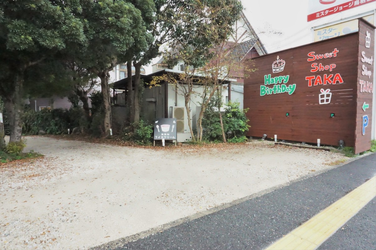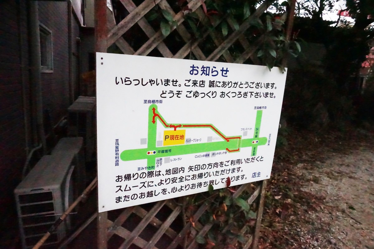 駐車場への出入り口は2箇所あり、バイパス側と店舗裏通りから出入り可能です。