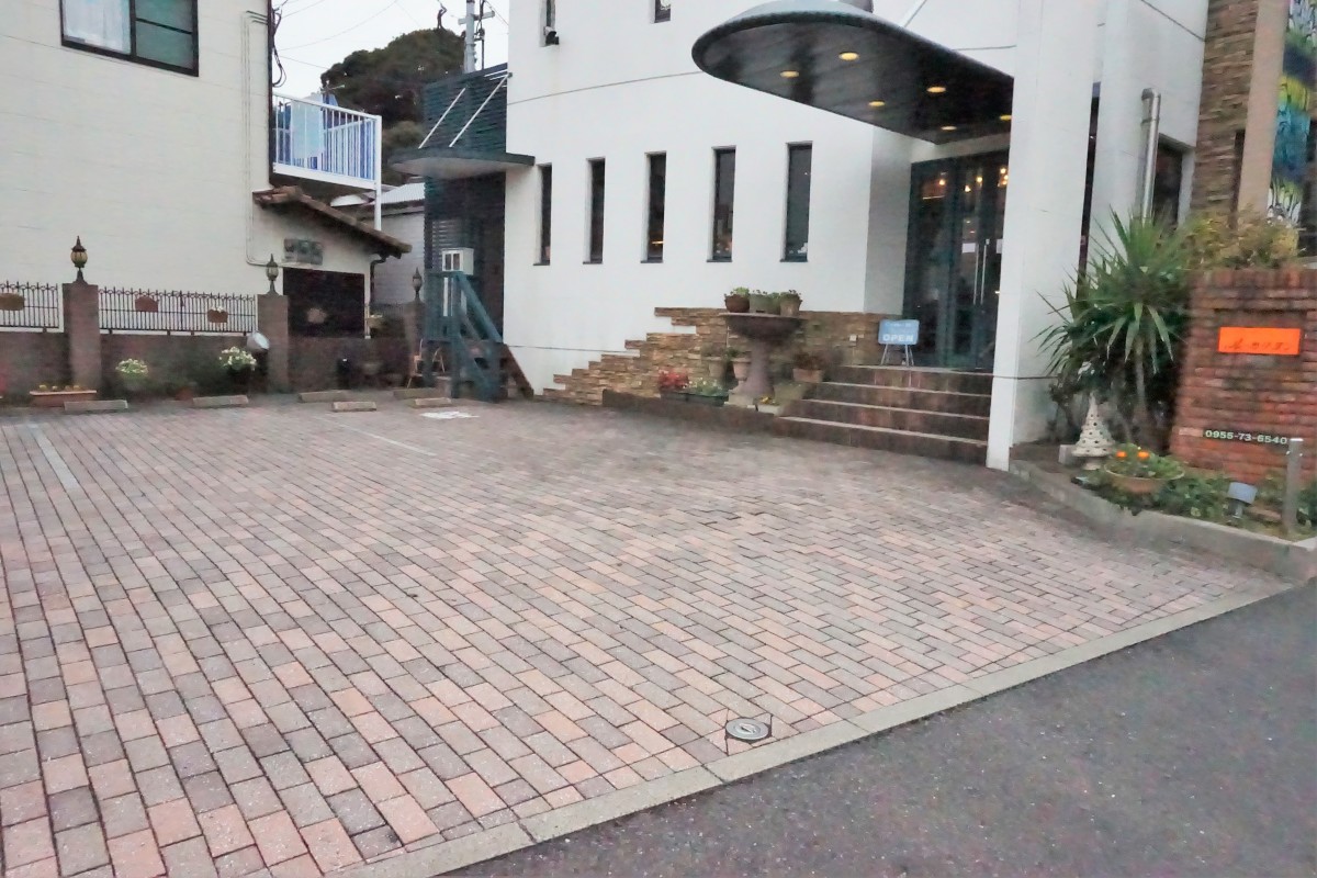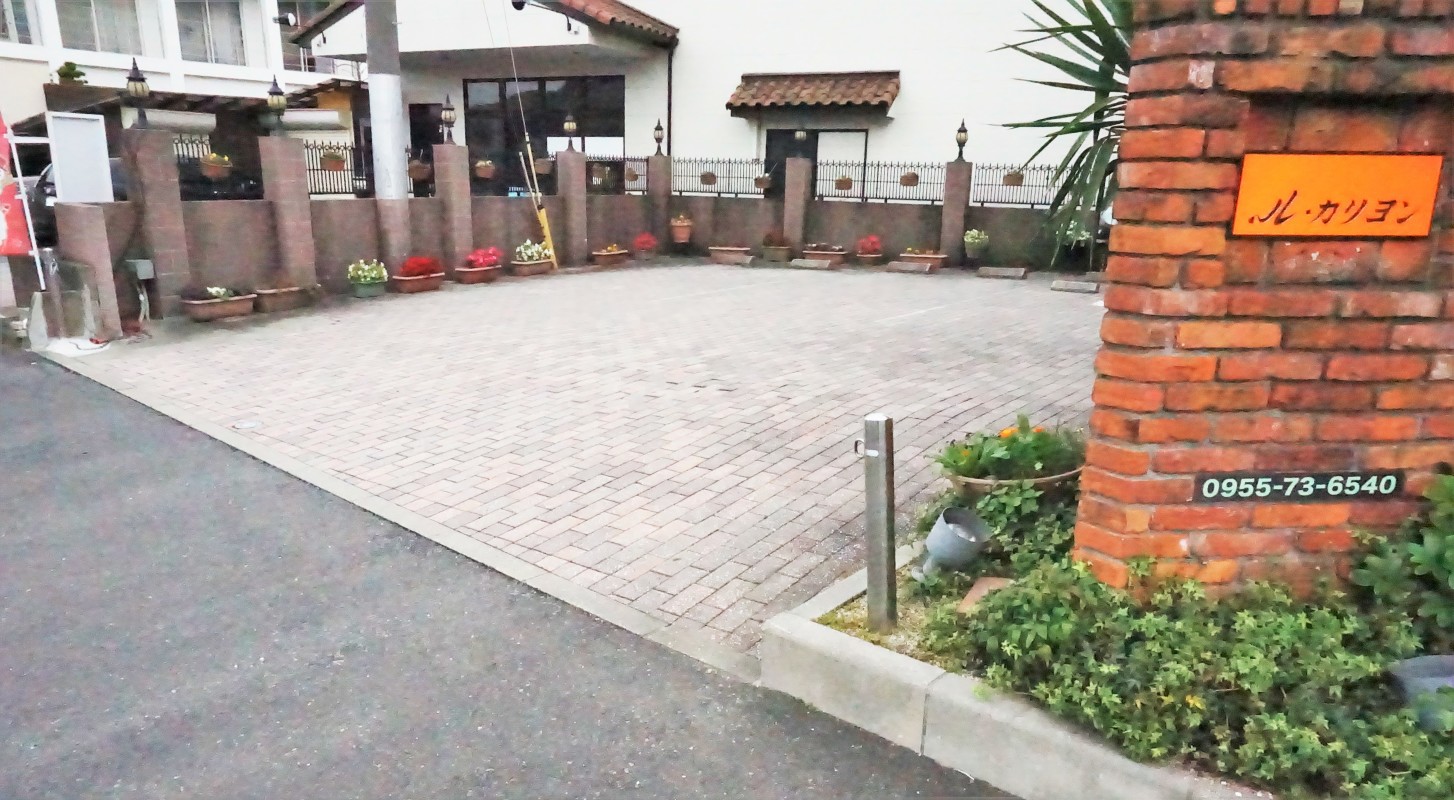 店舗前に3台、店舗裏の路地を入ったところに3台