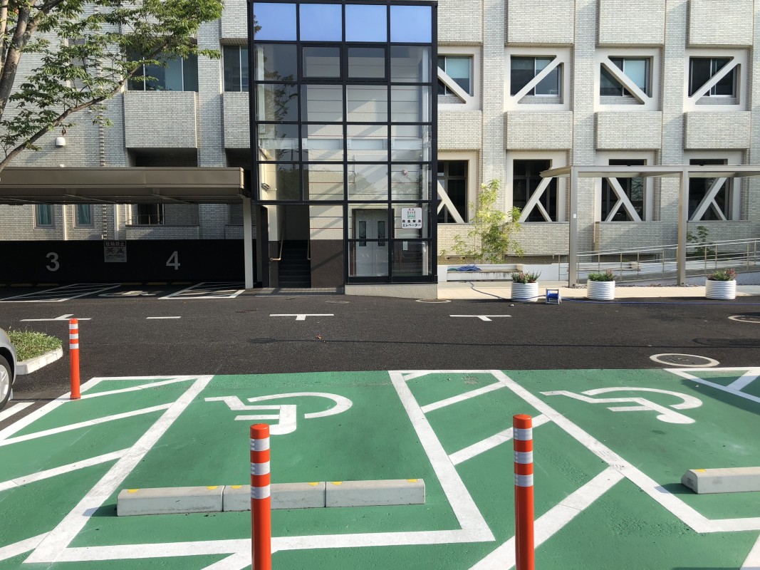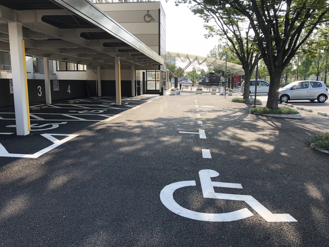 庁舎北側の駐車場には、屋根付の身障者等用駐車場が設置されています。