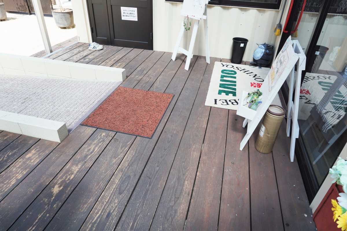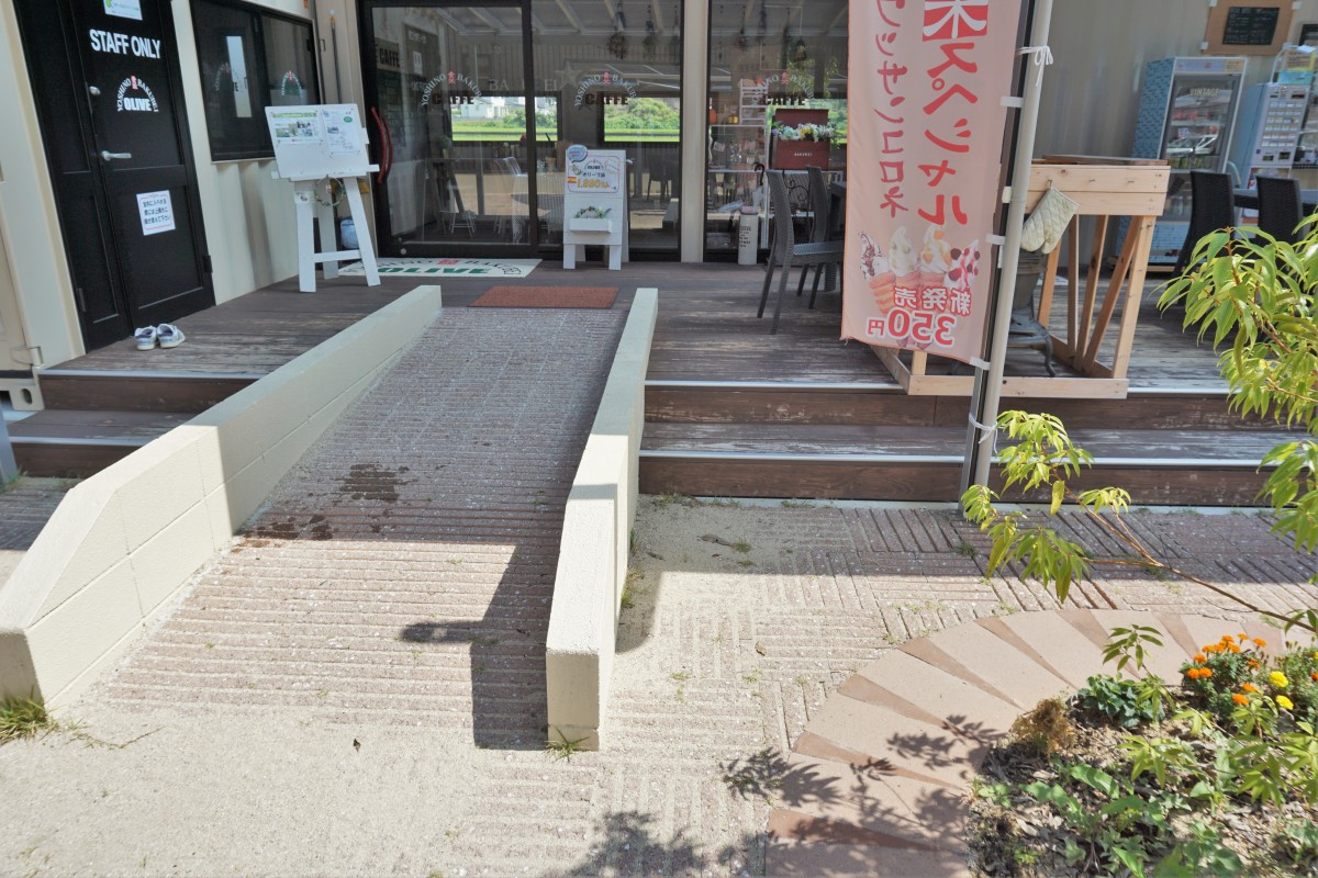 出入り口は建物正面入り口と東側入り口(テラス、トイレ側)の2箇所あり