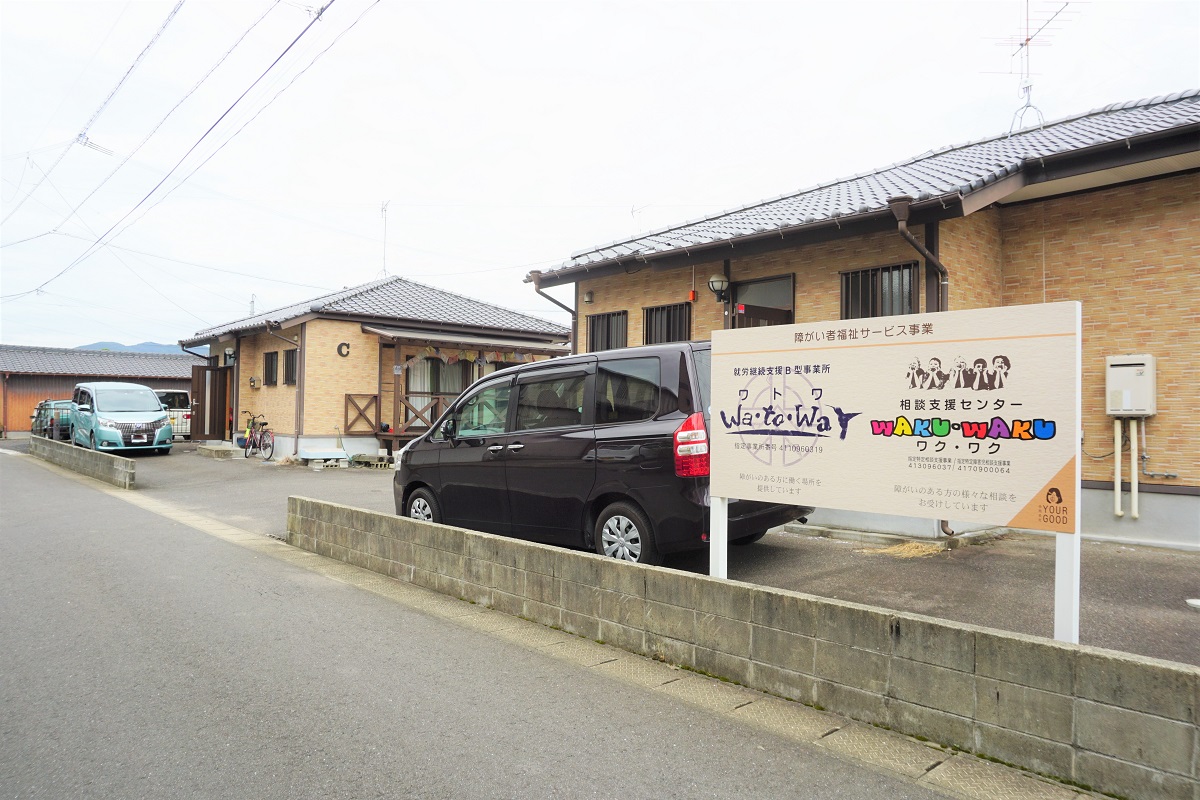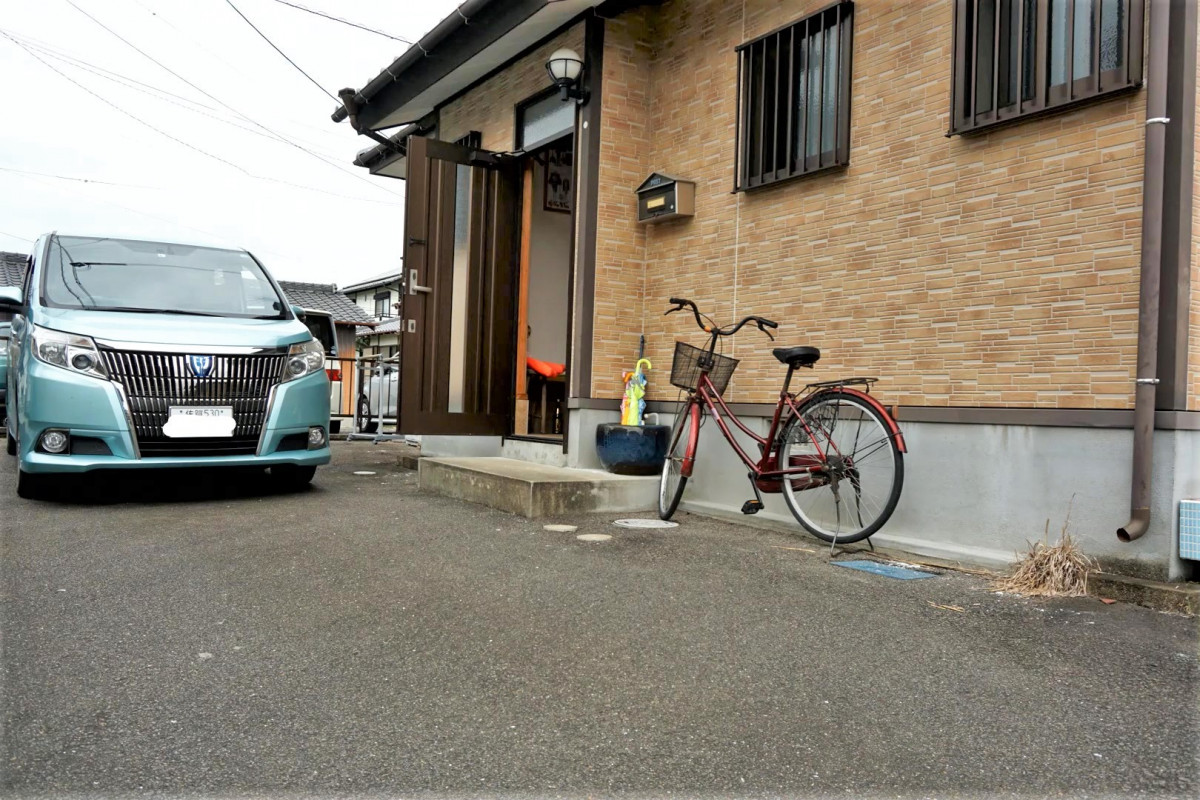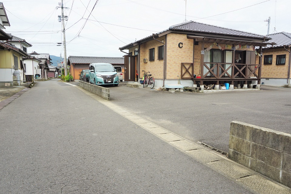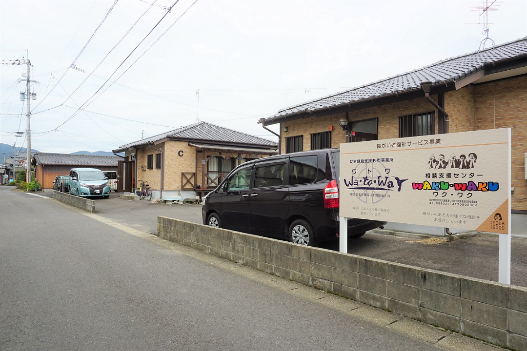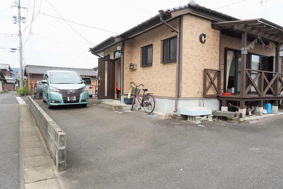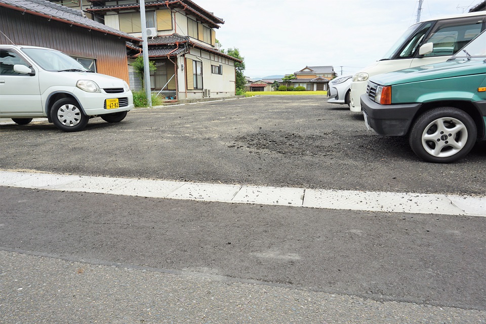 店舗入り口前と、道を挟んで向かい側の倉庫横、さらに店舗裏の空き地にあり