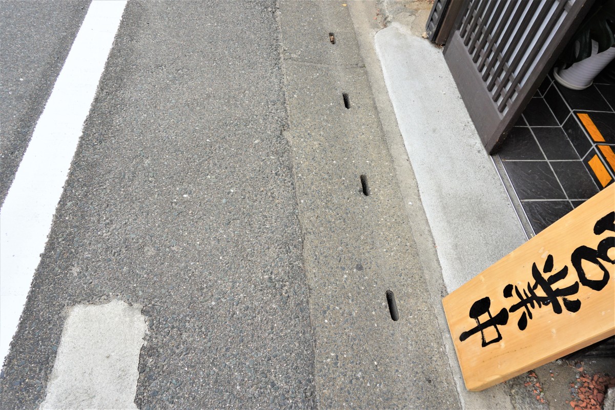 店舗前がすぐ道路のため側溝などの段差、傾斜が少々あり
