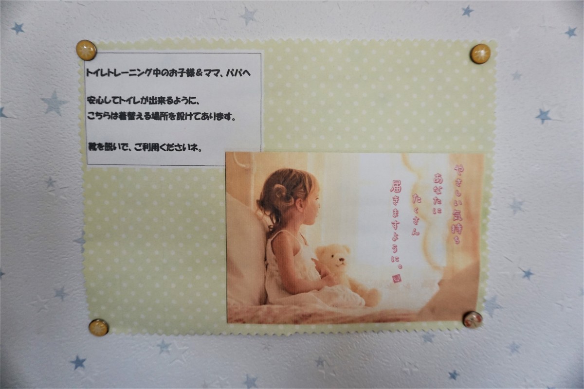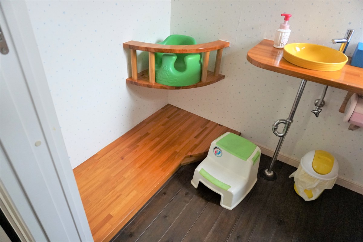 敷地内への入り口は傾斜になっておりますのでお気をつけください。店舗前はスロープがあり入店しやすいです。お子様用の手洗い場やキッズスペース、おむつ交換台、トイレの中にベビーキープと着替える台など設置しています。
