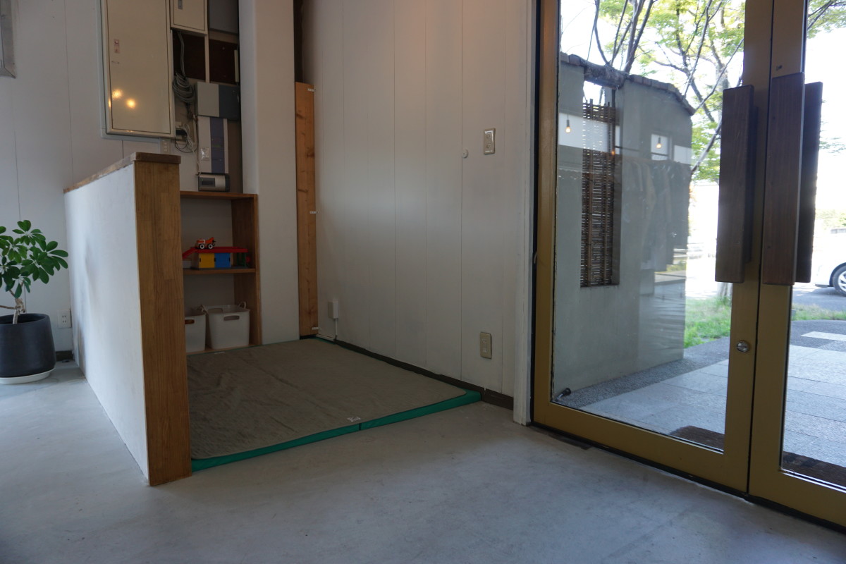 入って右側に柔らかいマットが敷かれたキッズスペースがあります。