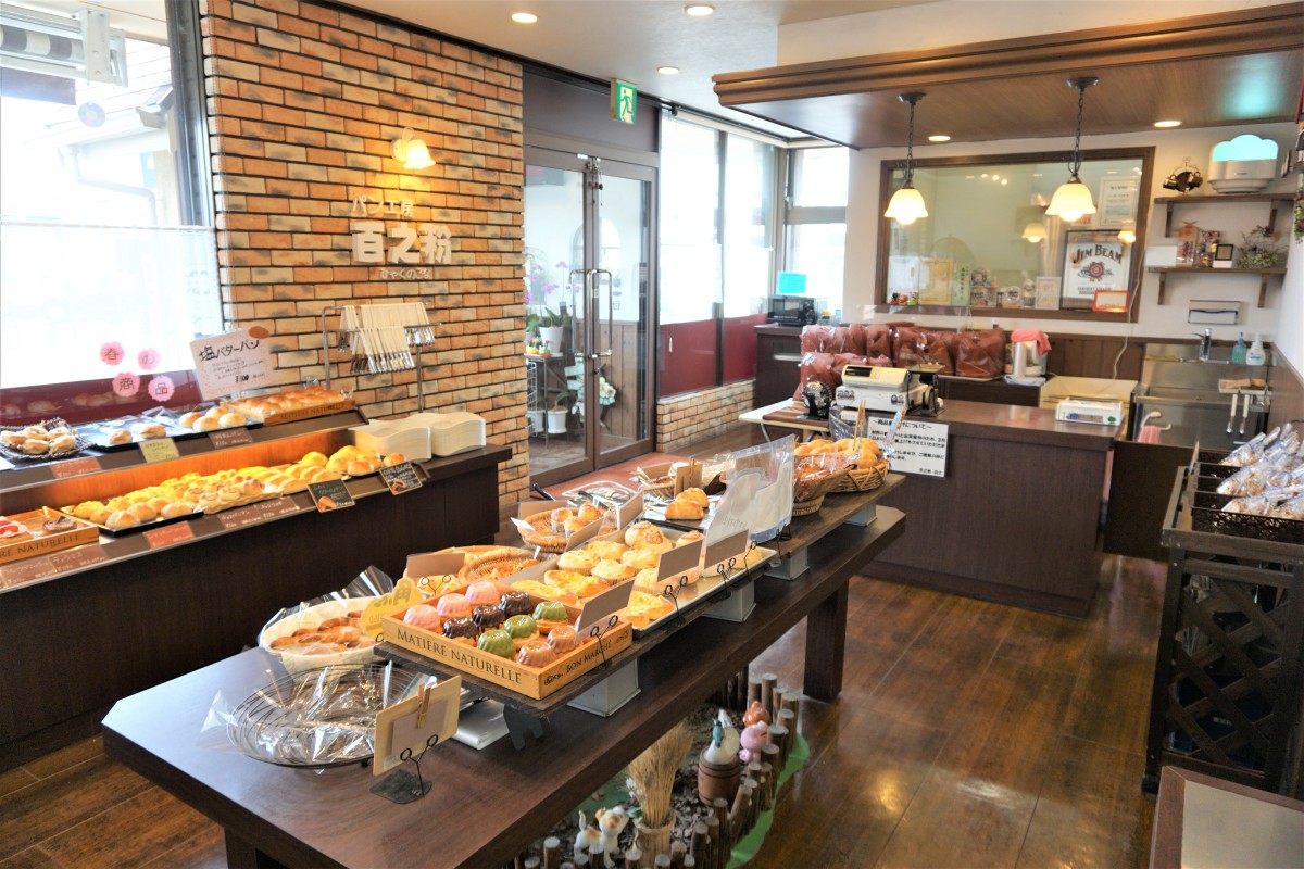 県内の有名店で修行を積み、2012年3月に白石にて開店。地元に愛され、地元の食材を使ったパンもたくさん並ぶ「百之粉」です。人気ナンバー1は「自家製あんぱん」で、一度に20個~30個のご予約される方もいらっしゃるほどです。その他、白石の自慢の食材であるレンコンや玉ねぎを使ったパンもあり、変り種として隠れたファンも多い「ちくわパン」もあります。「道の駅ふくどみ」でも一部販売しています。デザートパンから惣菜パンまでたくさんの種類がございますが、やっぱりおススメは自慢の食パンです。毎日の食卓に、ぜひ一度お試しください。