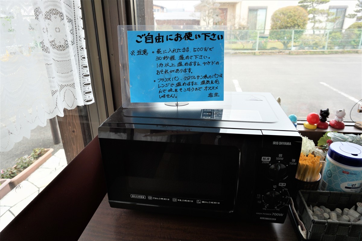 テラスにはイートインスペースあり、お手拭用濡れティッシュ設置しています。