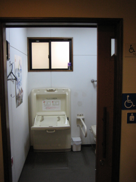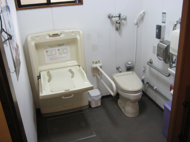 トイレには車いす対応、オムツ交換台、オスメイトが設置されています。