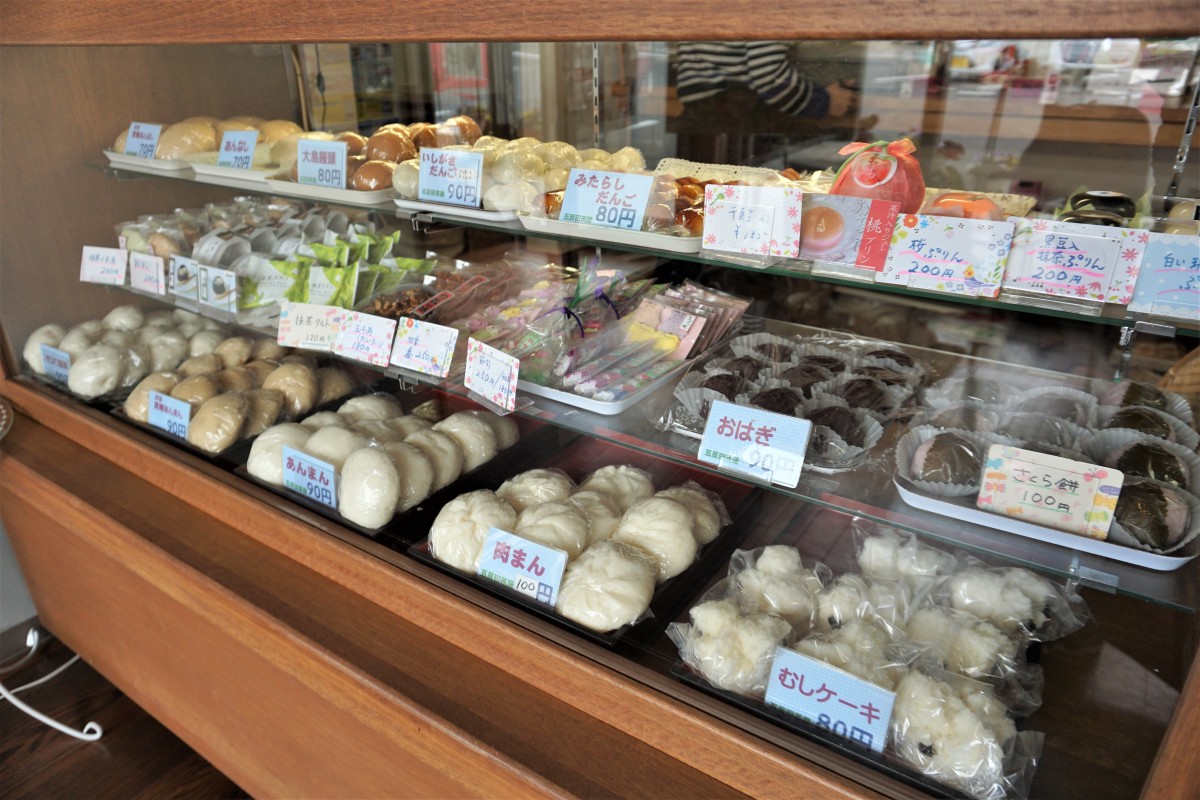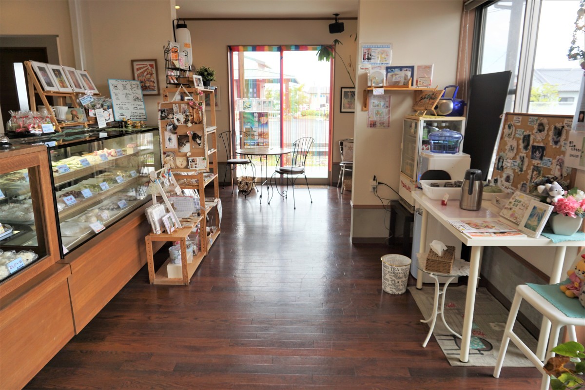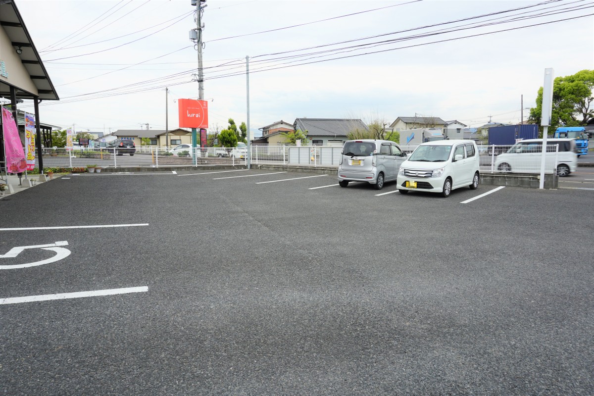 広い駐車場と店舗入り口前に身障者等用駐車場があります。イートインスペースもあり、購入した和菓子を楽しんでいただけます。トイレのスペースも比較的広いつくりになっています。