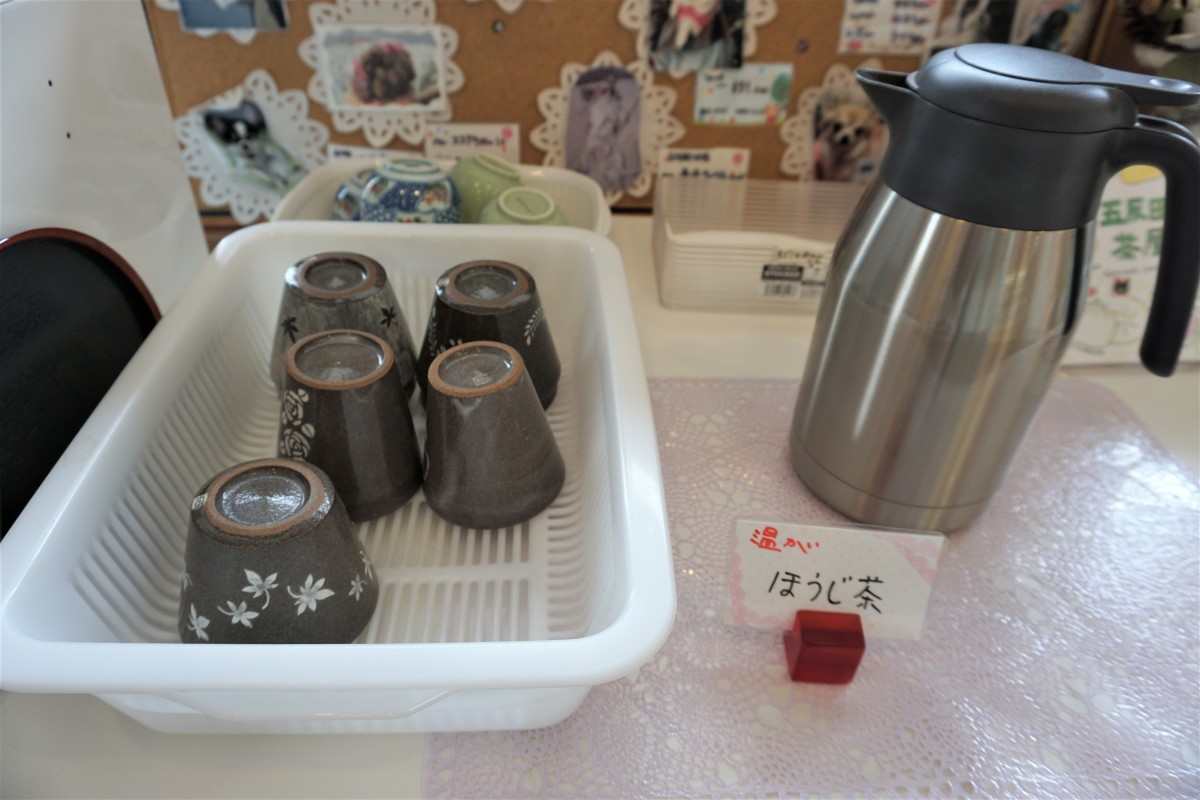 お水とほうじ茶のセルフサービスあります。