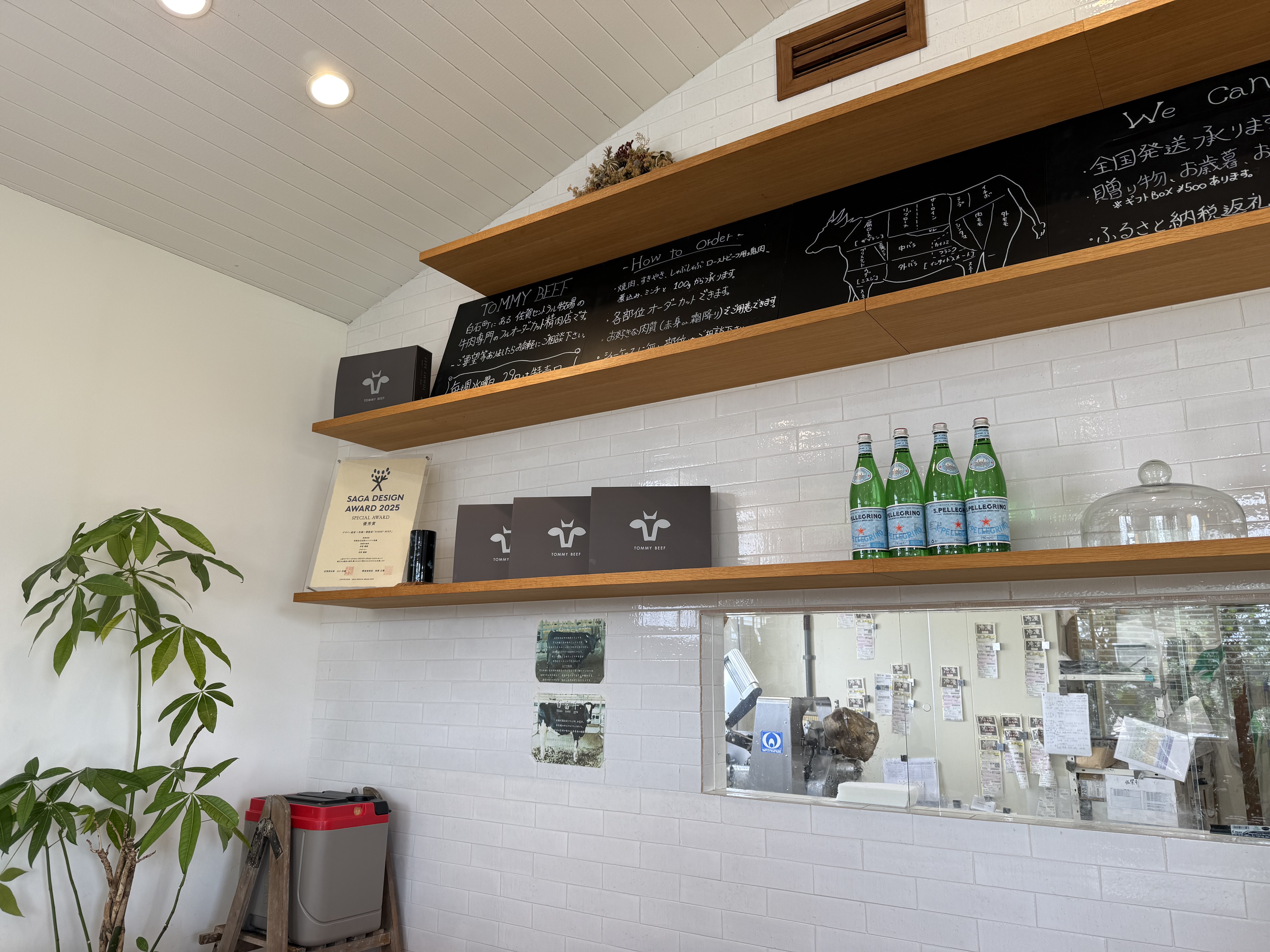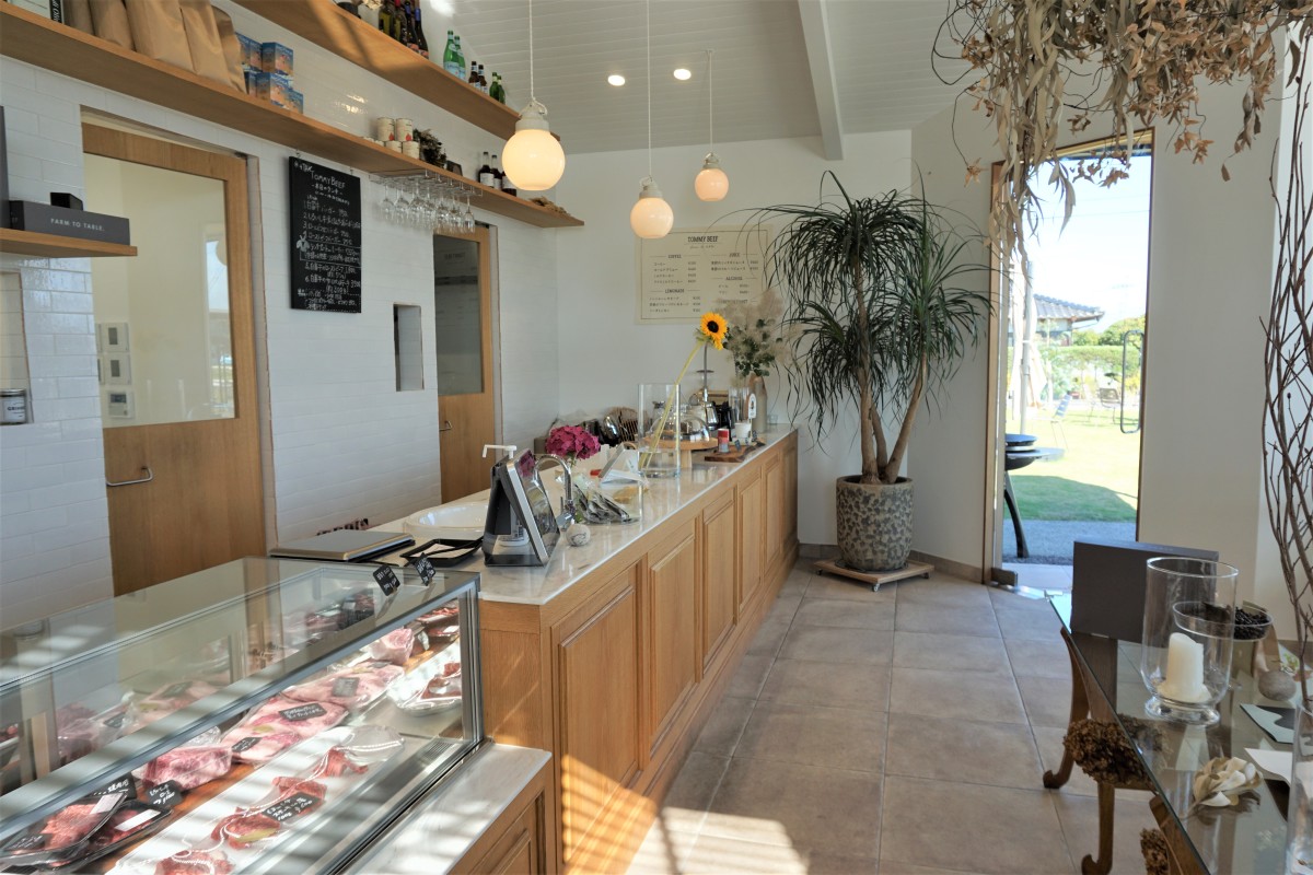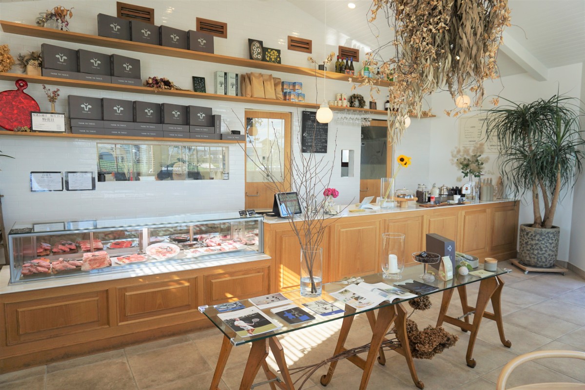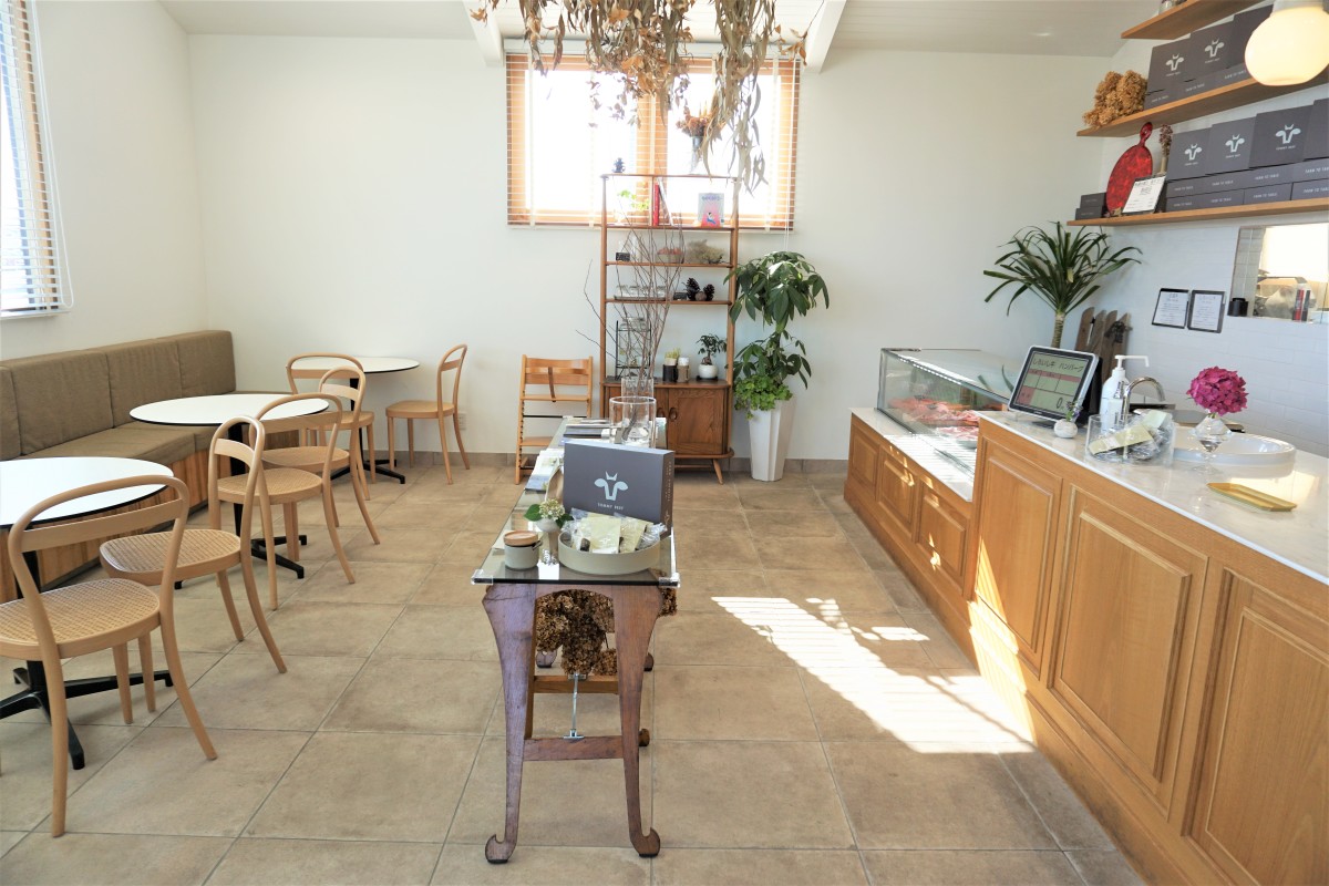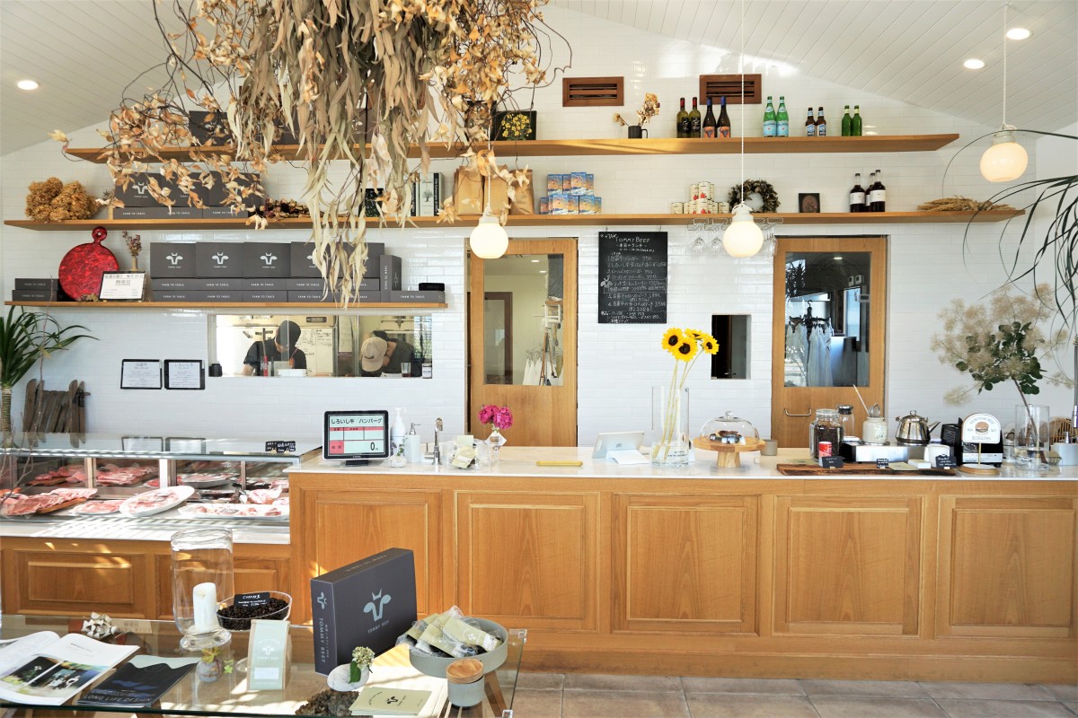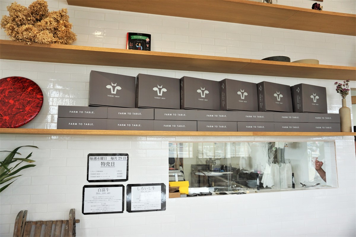 10:00~19:00はお肉屋さんとして、店内でカットしたり、加工したハンバーグやお肉を販売しています。11:00~18:00まではカフェ営業しております。ランチタイムはハンバーガープレートやローストビーフなどがあり、そしてティータイムではスウィーツやコーヒーなども楽しめます。自慢のハンバーガーには、自社ブランド牛の「白富牛」を100パーセント使用して作っており、パン粉や卵不使用で、つなぎには上質な塩のみ!という、特別な配合のパテ(ハンバーグ)を使用。トッピングも日々仕入れる白石産の旬のお野菜を使用していて、地元生産者とお客様をつなぐ精肉店兼カフェです。テイクアウトやBBQもできますので、一度ご来店、ご相談ください。