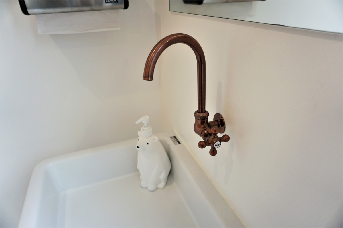 トイレは店外へ一旦出たところにあり、入り口前に段差があります。