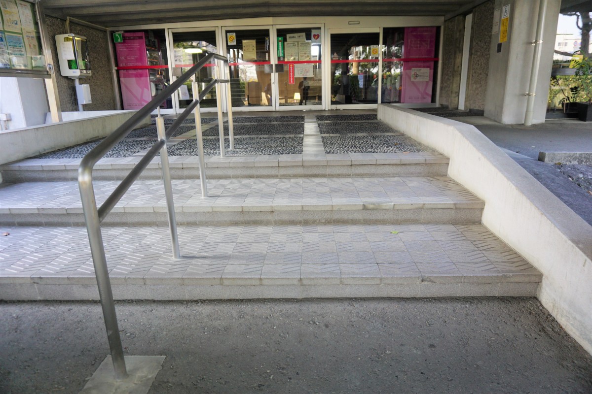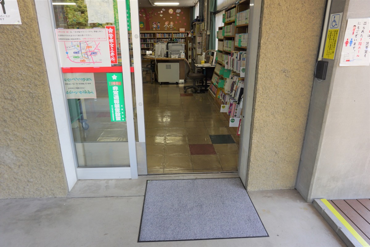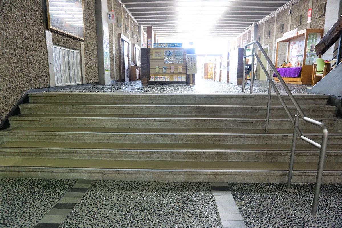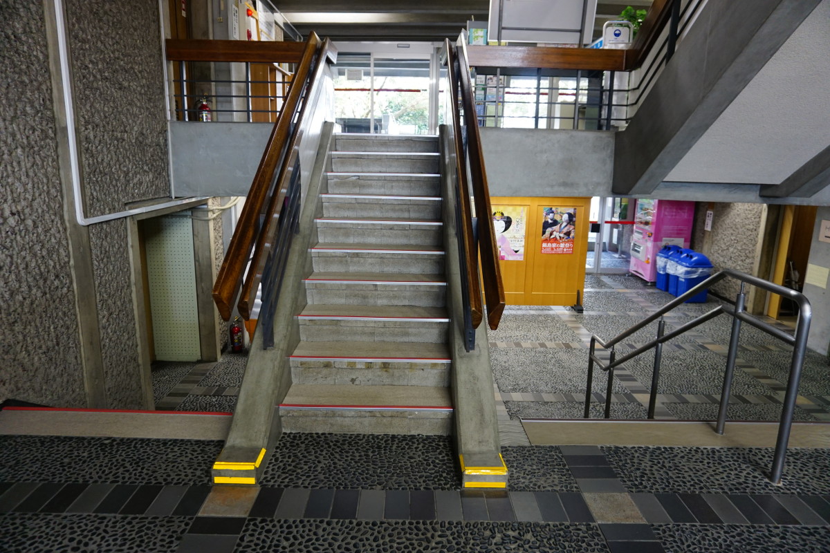 北側入り口から入ると、2階閲覧室へは6段の階段があります。