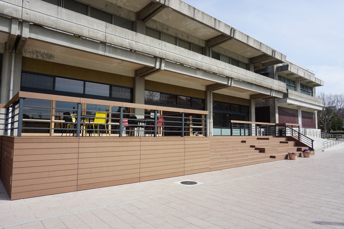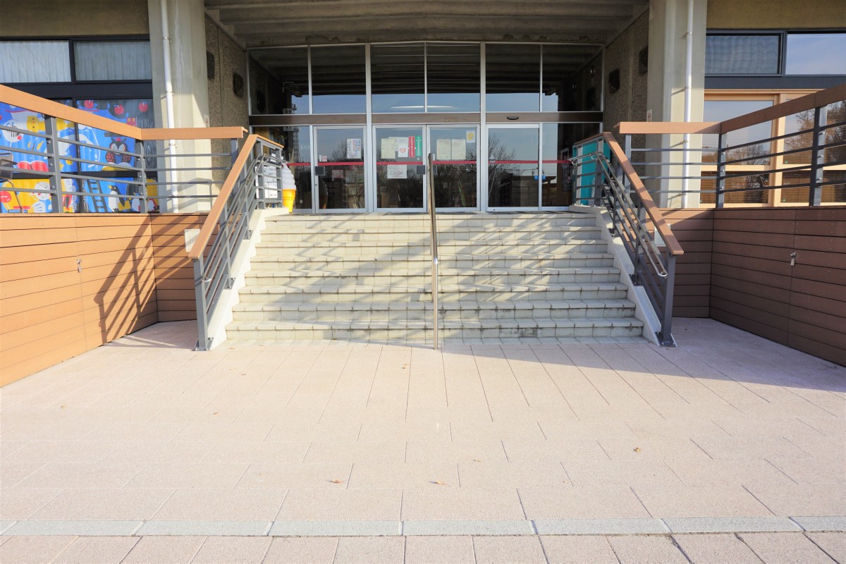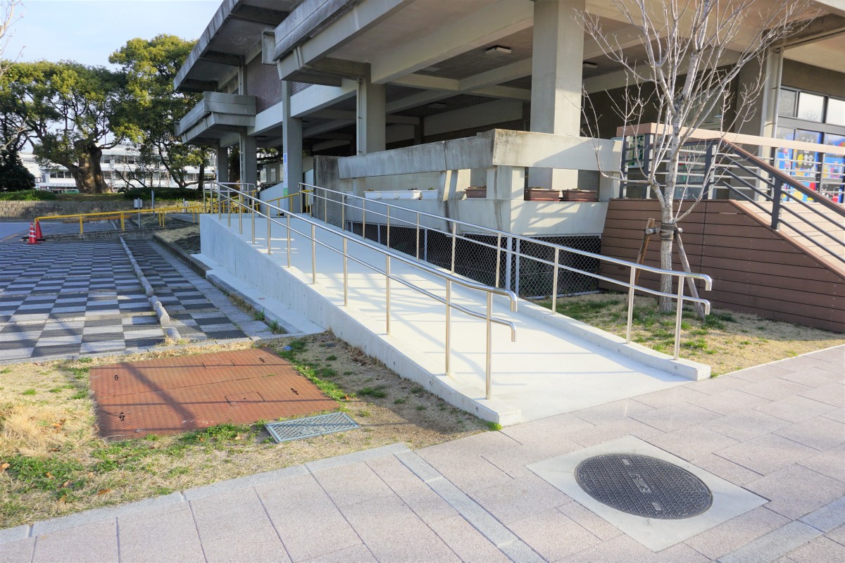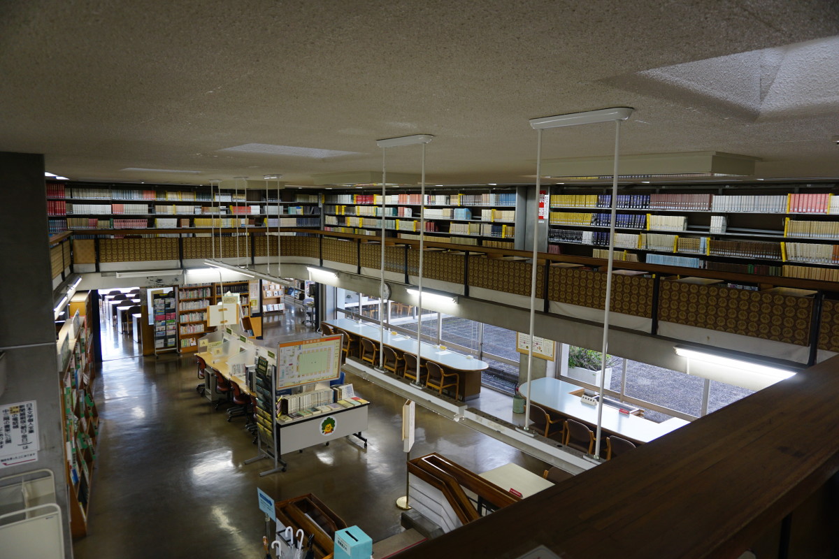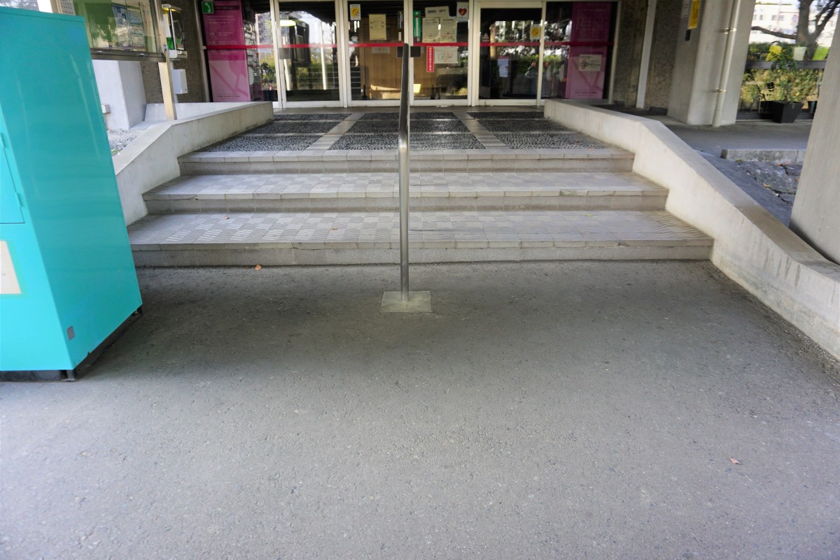 北側入り口から入ると、2階閲覧室へは6段の階段があります。