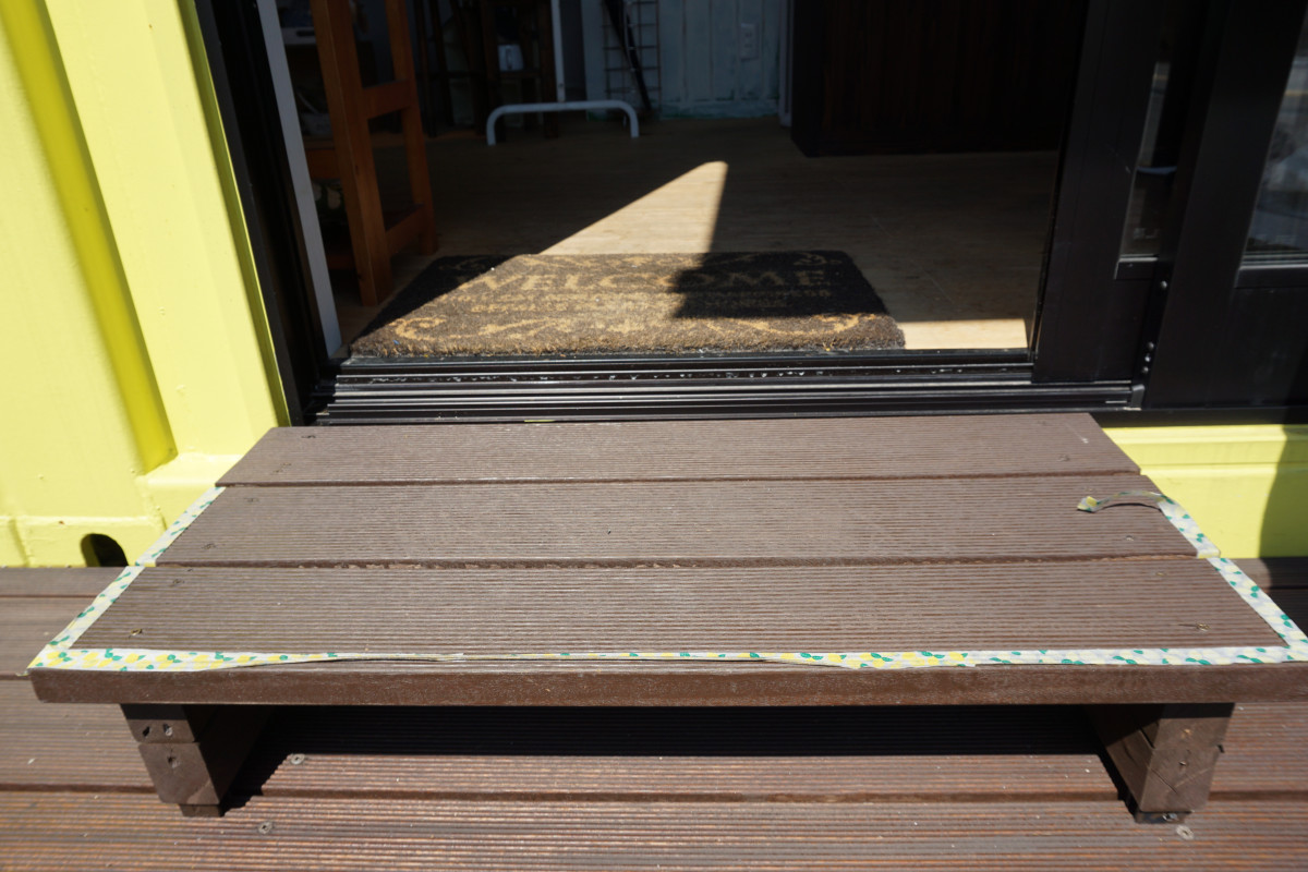 建物はコンテナを利用したものです。駐車場からコンテナ入り口まで、2段の段差があり、入り口は2箇所ございます。カフェはソファ席とカウンター席のみです、一度お写真をご確認ください。