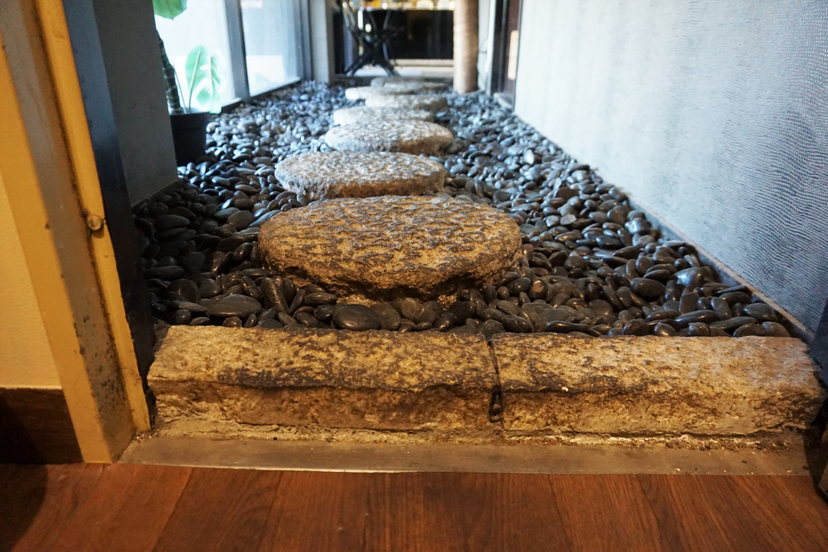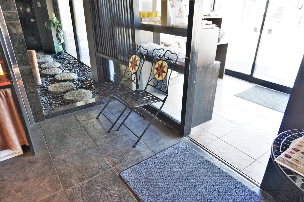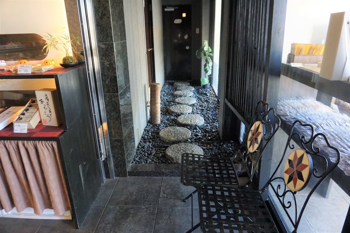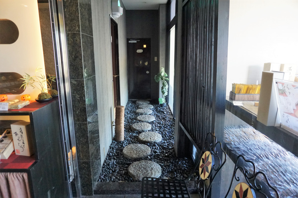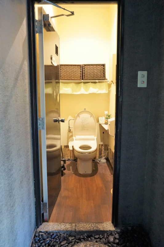 駐車場完備(すべて一般駐車場)です。トイレの貸し出しありですが、入り口までの通路は飛び石と砂利が置かれています。
