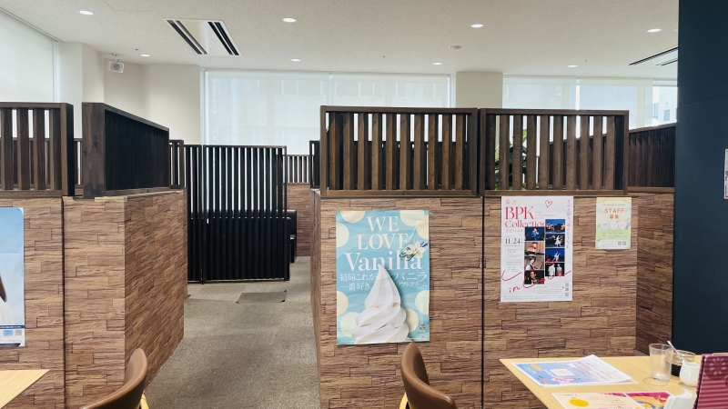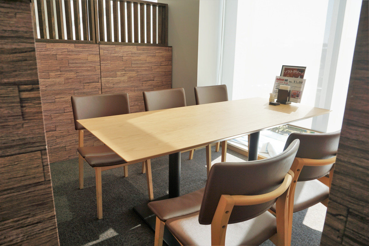 バルーンミュージアムの2階にあります。バルーンミュージアムの駐車場をご利用ください。駐車券をご精算時に提示いただければ1時間無料になります。半個室用の仕切り壁を移動することができますので、最大60名まで、様々な人数に対応いたします。バルーンミュージアム館内には授乳室、車いす対応トイレ、多目的トイレ、キッズスペース、ベビーカーの貸し出し、車いすの貸し出しなどございますので、ご安心してご来店ください。