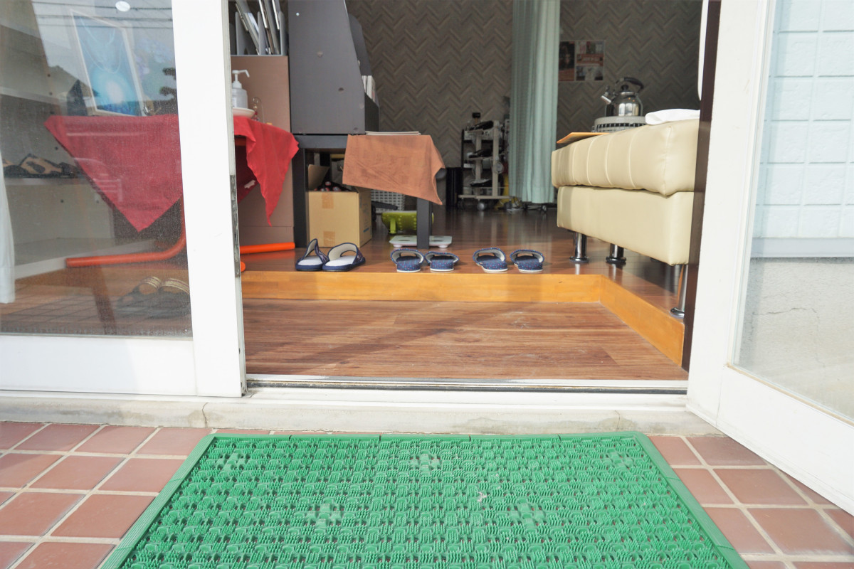 舗装なしの駐車場あり。入口と屋内に段差がございますので、お写真にてご確認ください。来院が難しい方は出張治療(交通費別途)も行いますので、一度ご相談ください。