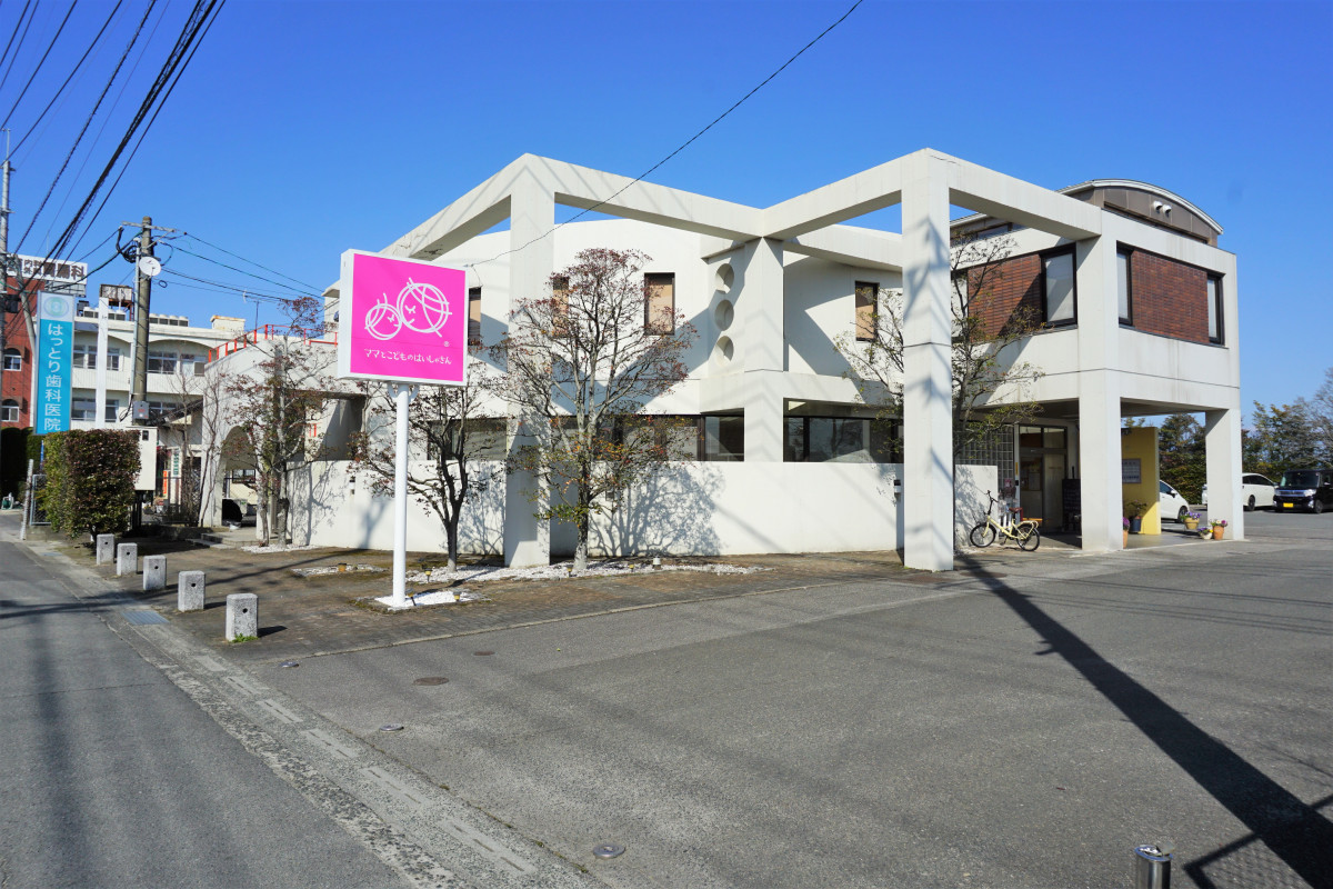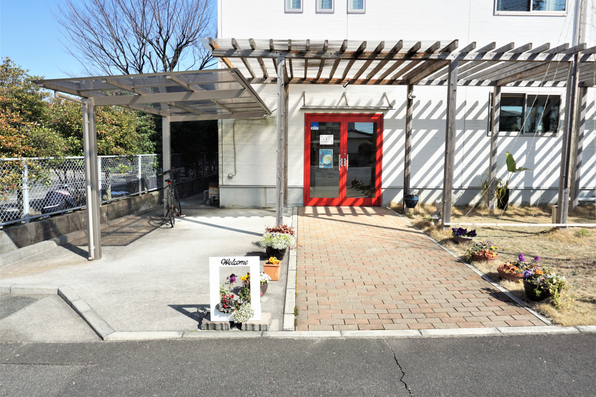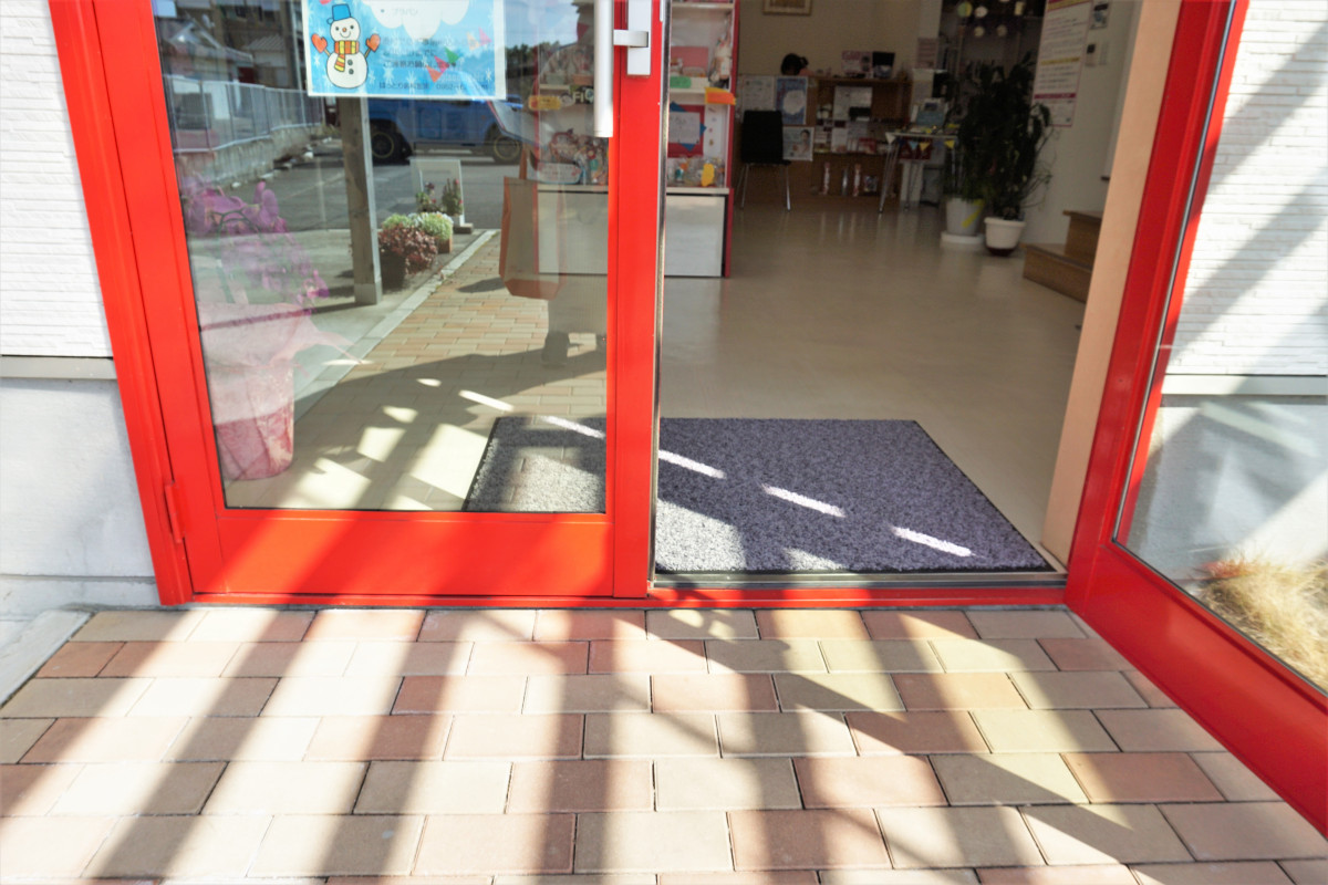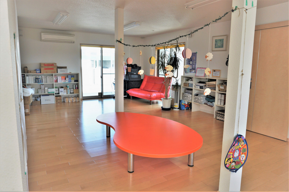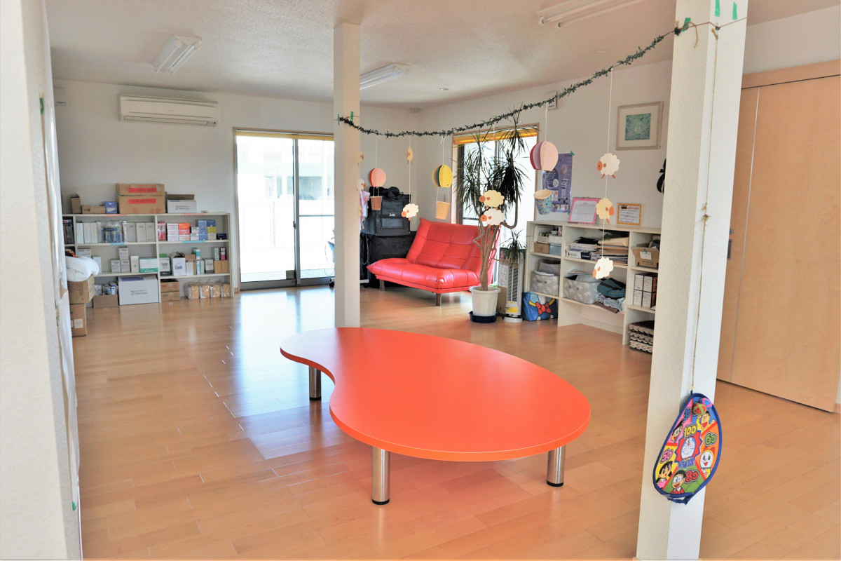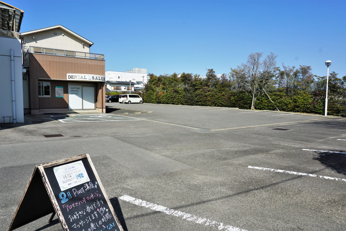 はっとり歯科医院の隣に位置します。駐車場も広く店内まで段差はございません。託児や教室を行う部屋、その奥にあるトイレは、靴を脱いで上がっていただきます。はっとり歯科医院から来店される場合は敷地内に連絡通路がありますが、少々段差があります。お写真にてご確認ください。ご来店が難しい場合はオンラインショップもございますので一度ご覧ください。