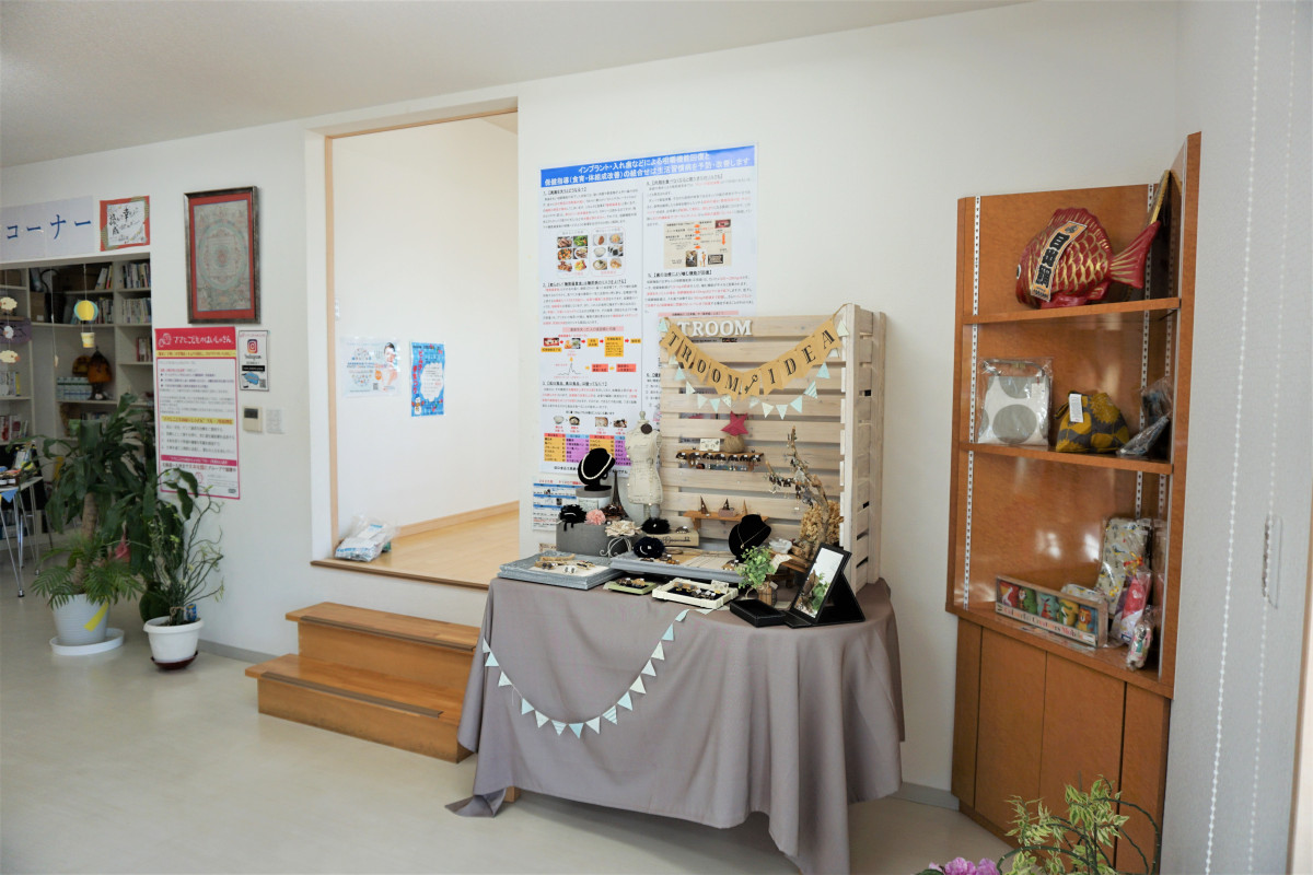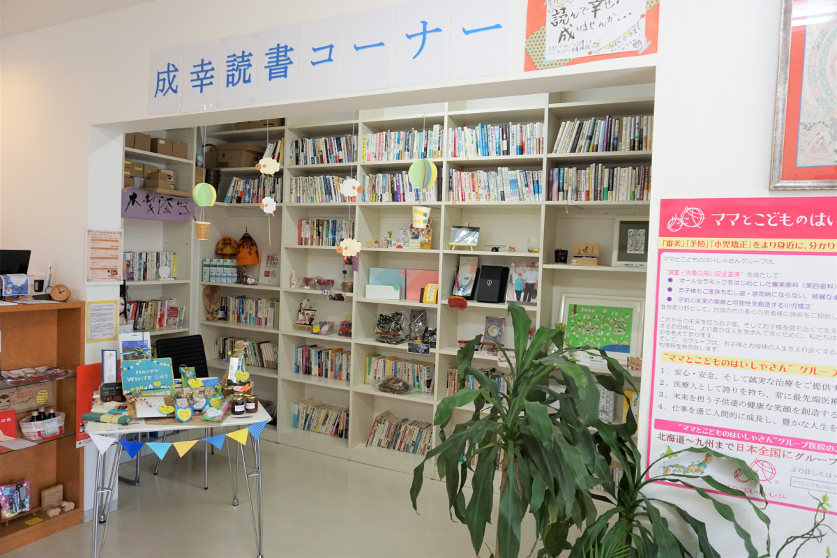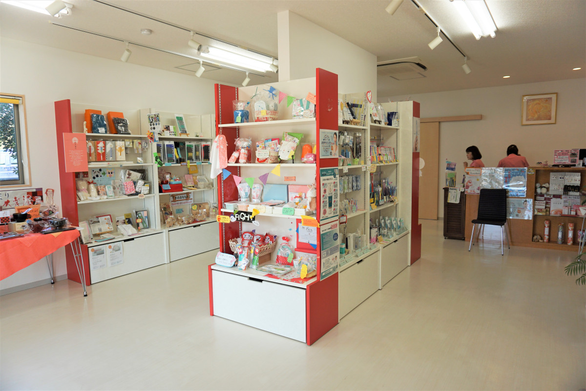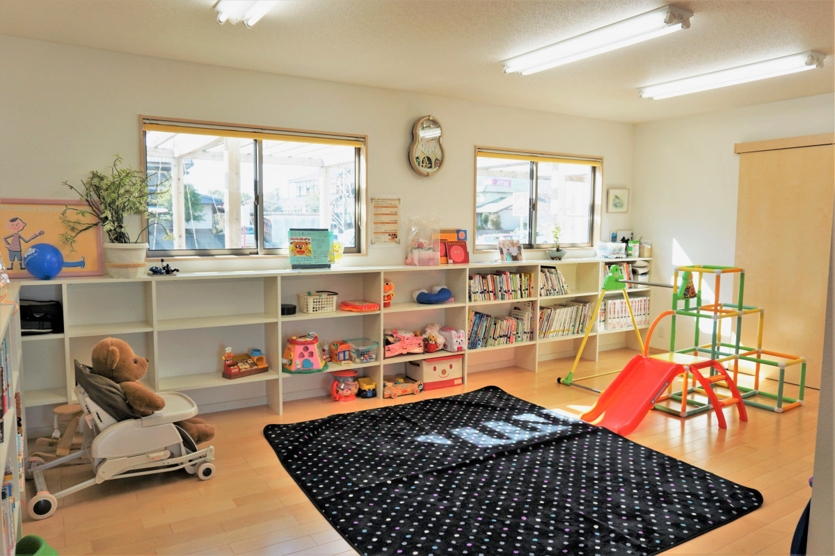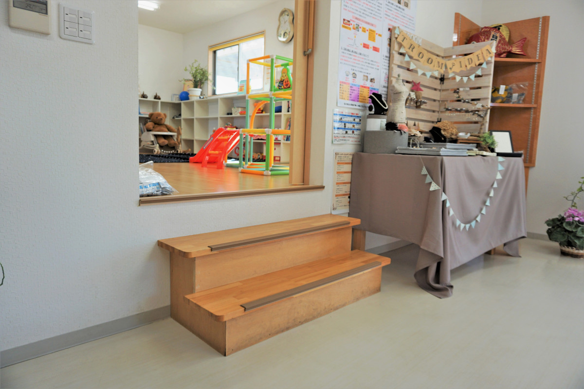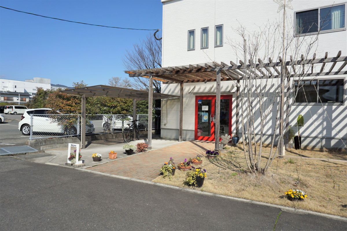 はっとり歯科医院の隣に位置します。駐車場も広く店内まで段差はございません。託児や教室を行う部屋、その奥にあるトイレは、靴を脱いで上がっていただきます。はっとり歯科医院から来店される場合は敷地内に連絡通路がありますが、少々段差があります。お写真にてご確認ください。ご来店が難しい場合はオンラインショップもございますので一度ご覧ください。