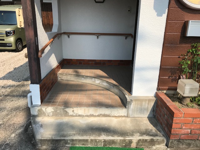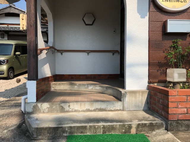 お店の入口に段差が3段あります。さがすたいる補助金を活用し、手すりを設置しています。