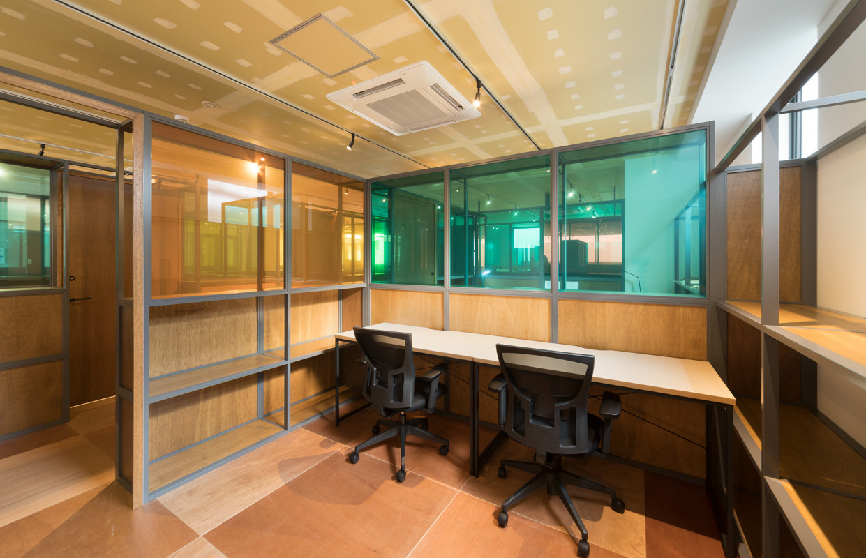 シェアオフィス、レンタルスペースとも開き戸になっています。