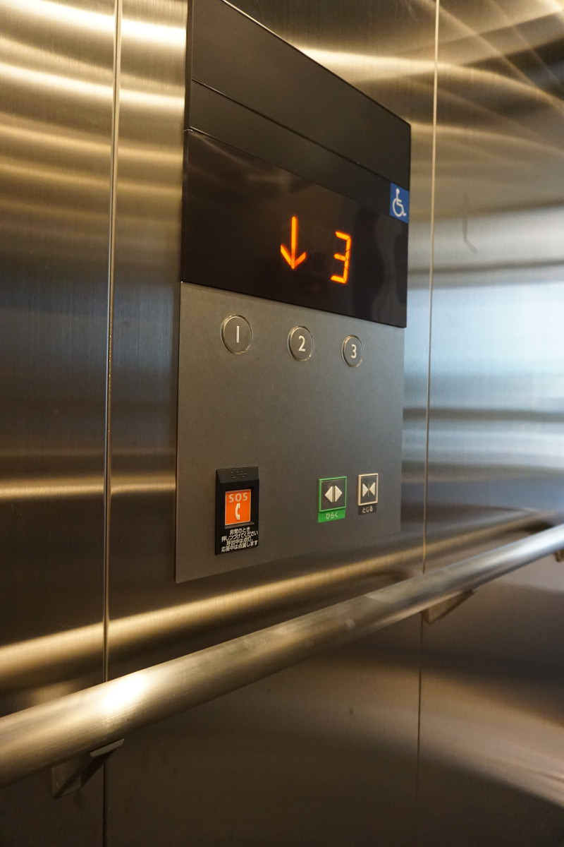 3階にあるため、エレベーター、階段あり