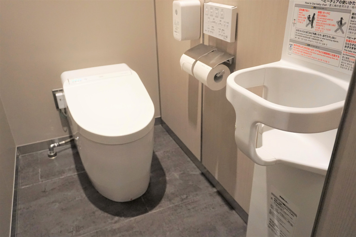 車いす用トイレ、おむつ交換台のある多目的トイレやベビーキープのある共用トイレはKARAE館内1階にございます。
