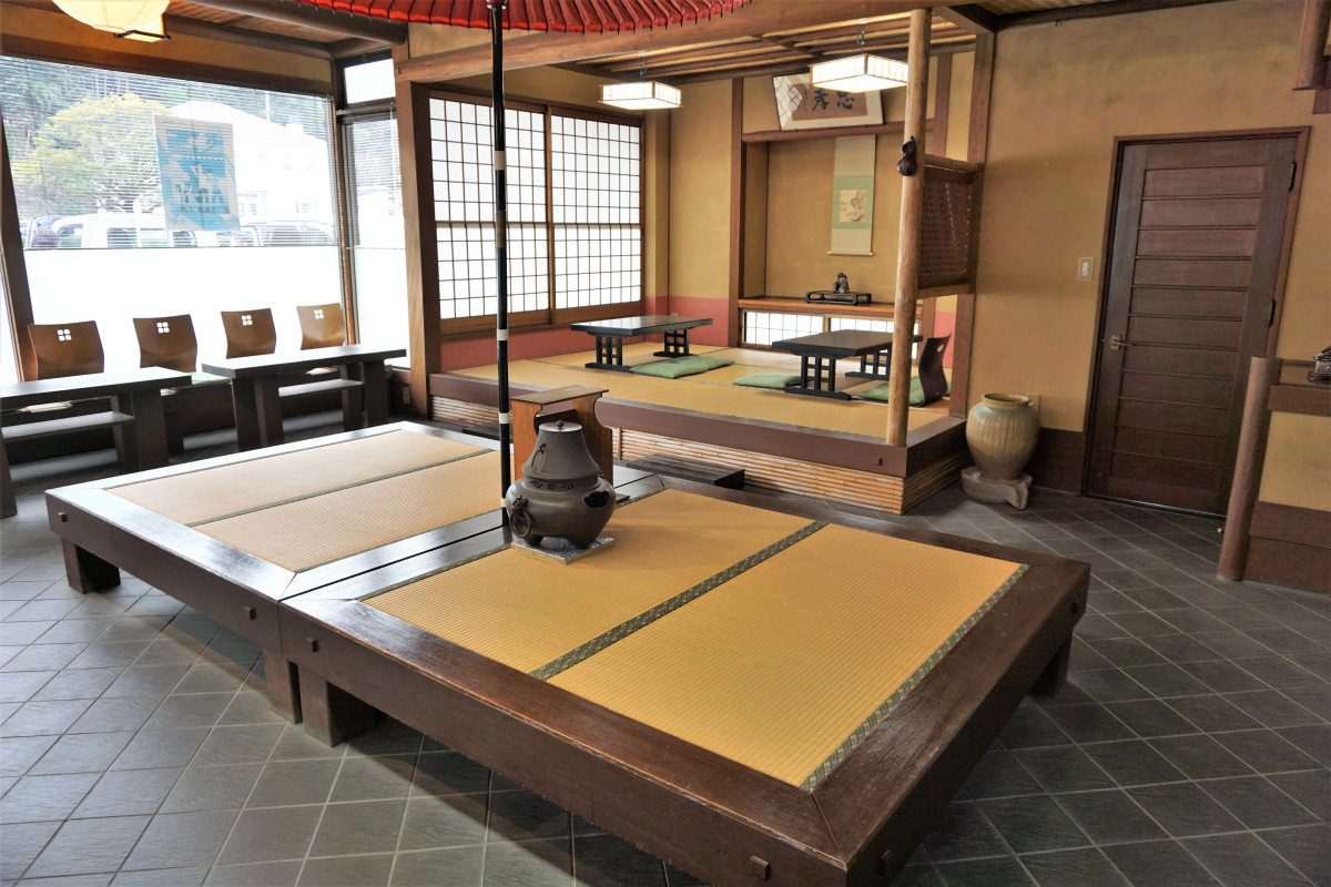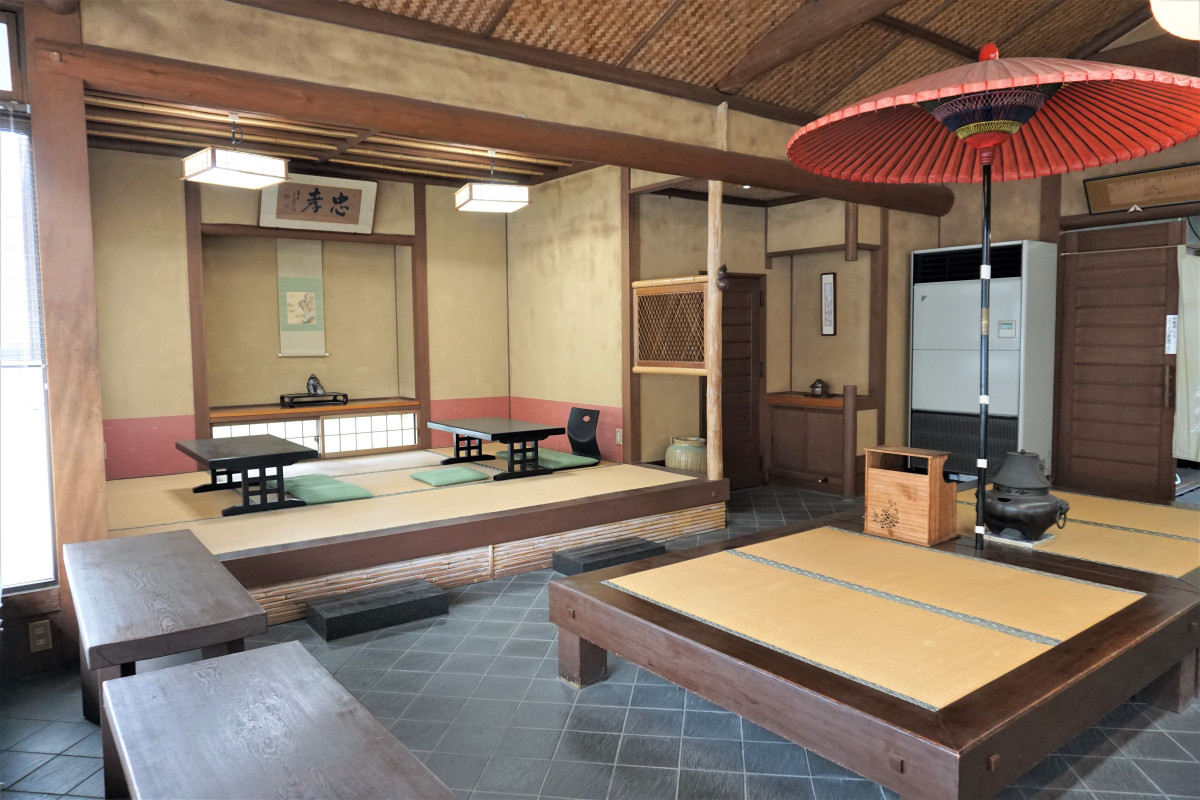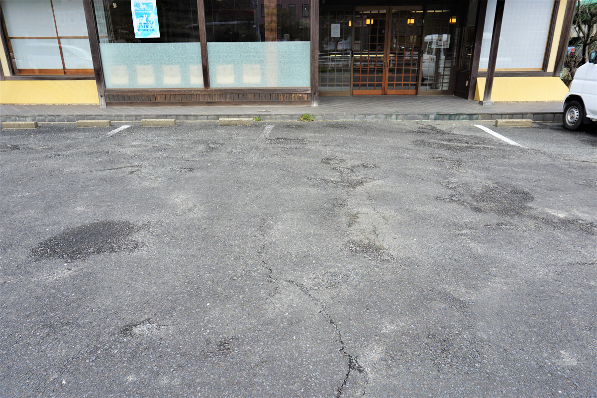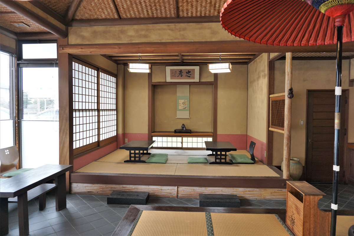駐車場は広く、店内も広い空間がひろがります。小上がりの畳スペースがあり、キッズスペースとして活用できます。ベビーカーのまま、車いすでの入店可能ですが、入口の前に1段の段差がございます。