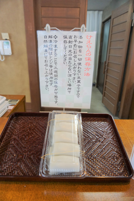 浜崎にある「伊藤けえらん」の新家です。400年の秘伝を守り大切に作られている「けえらん」は現在4代目店主により、そのまま受け継がれ、観光に便利なバイパス沿いの新家でもご購入いただけます!豊臣秀吉が朝鮮出兵の際、地元民によって献上された戦勝祈願の菓子。もち米ではなく米粉を使い、柔らかく、でも弾力のある何とも言えない食感が特徴で、完全無添加のため日持ちが一日ということから、”幻の菓子”として愛されてきました。現在では、瞬間冷凍技術でおいしさそのままに通信販売にて、どこからでもご購入いただけるようになりました!秀吉公が「これを食べたなら勝つまでは帰らん(けえらん)」と言った逸話のある一品と、羊羹できた「呼子のいか」も唐津土産におすすめですよ♪ぜひ一度お試しください。
