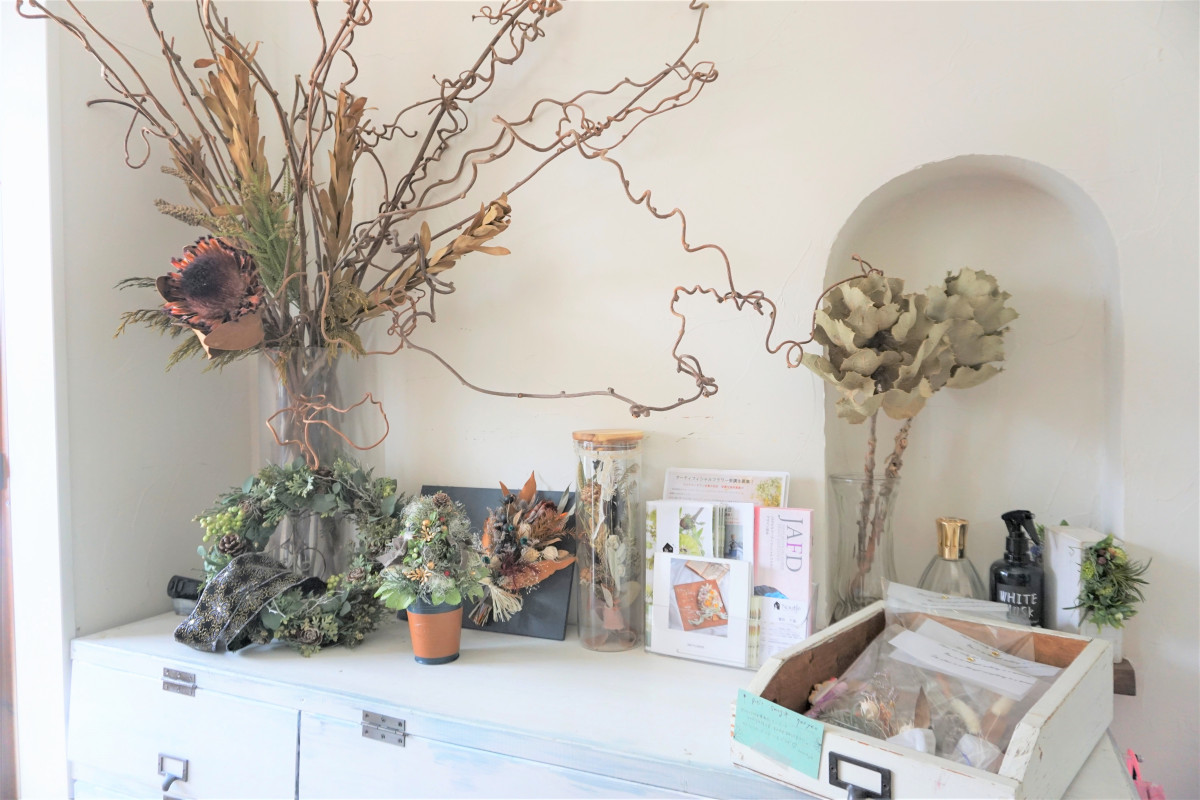 お花を通して自分を大切にする時間をお過ごしください。当アトリエは予約制になっております、まずはお問合せください。
