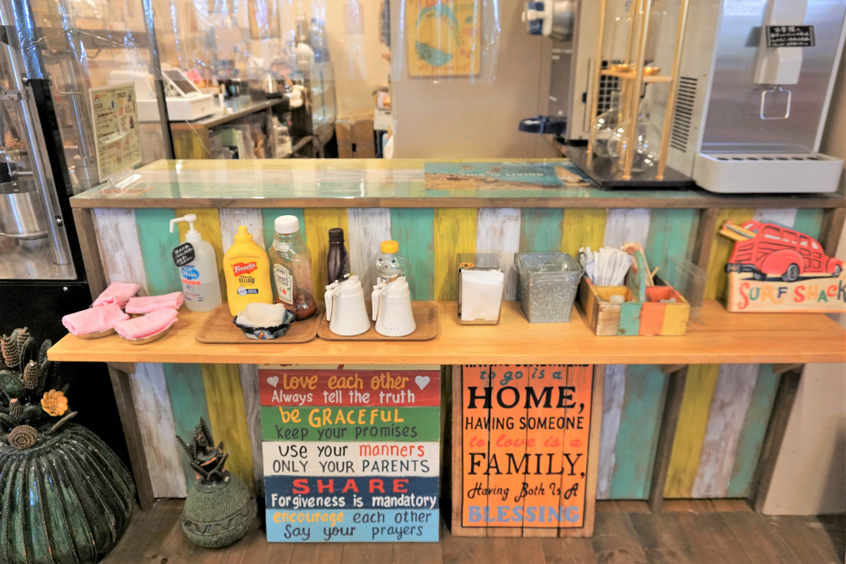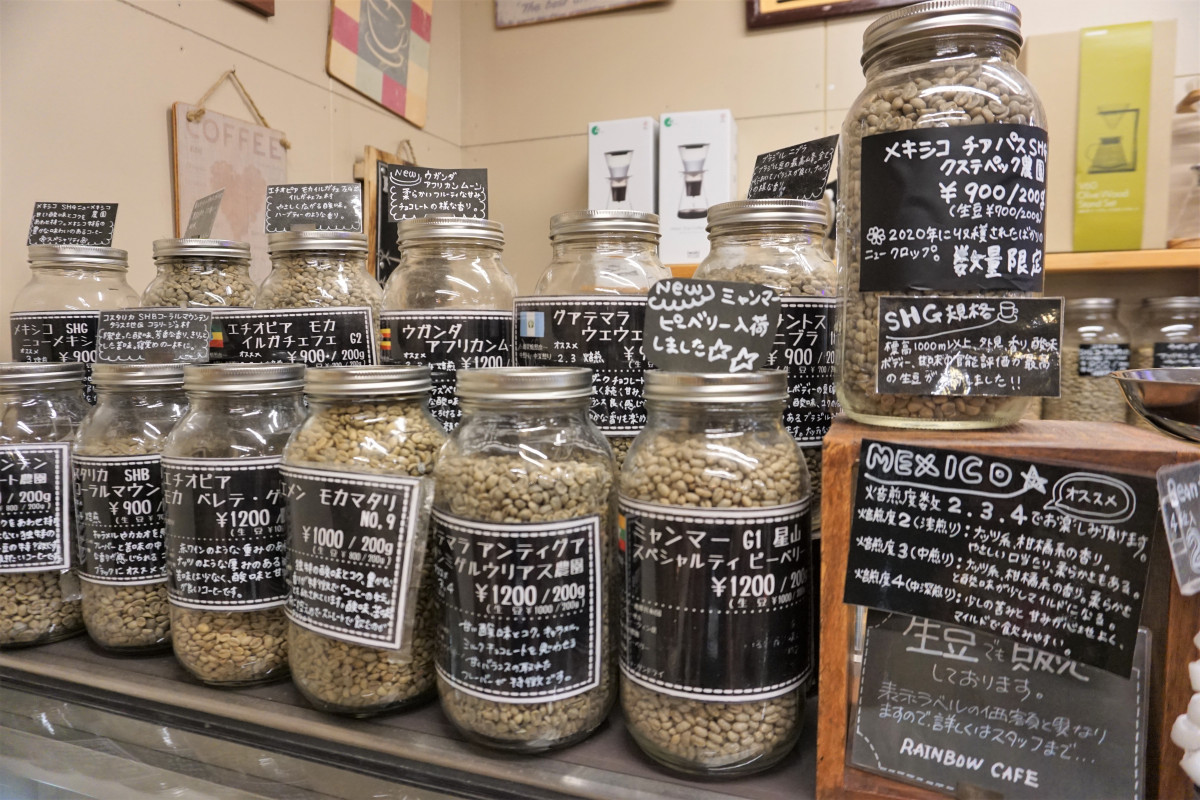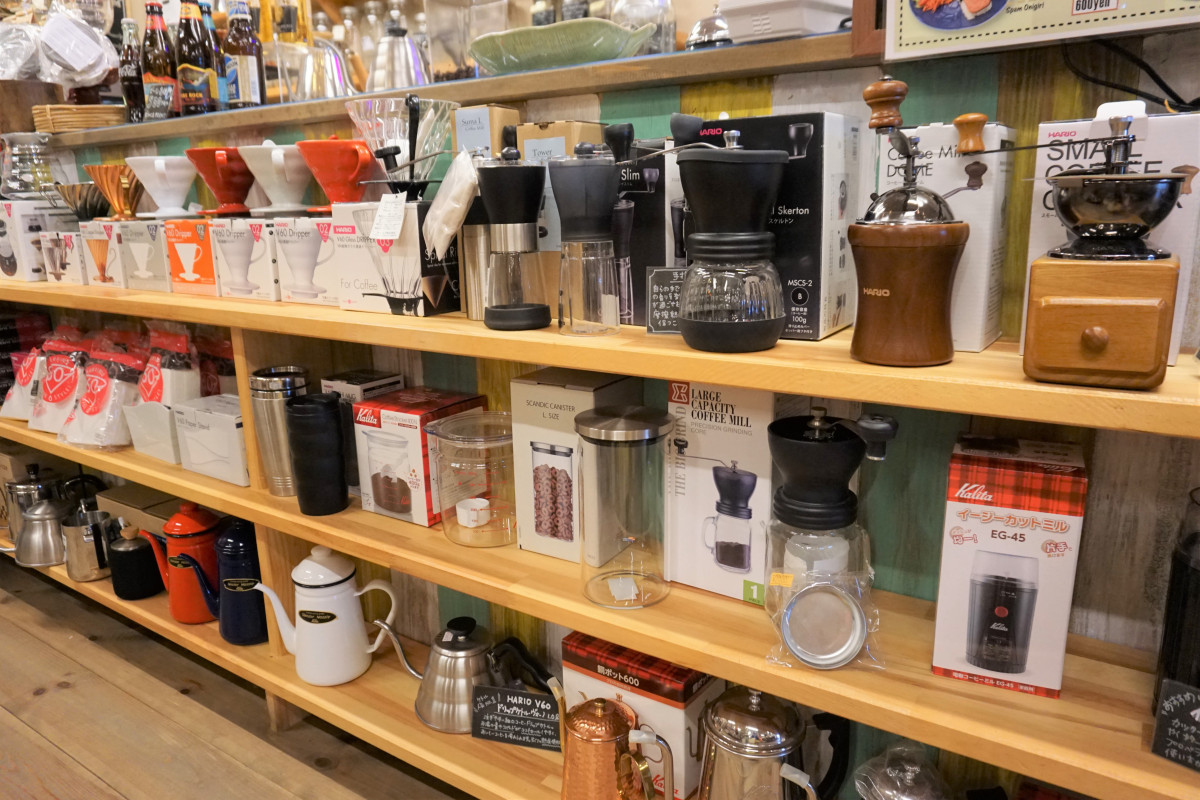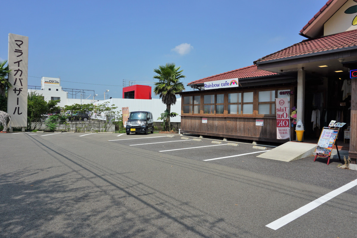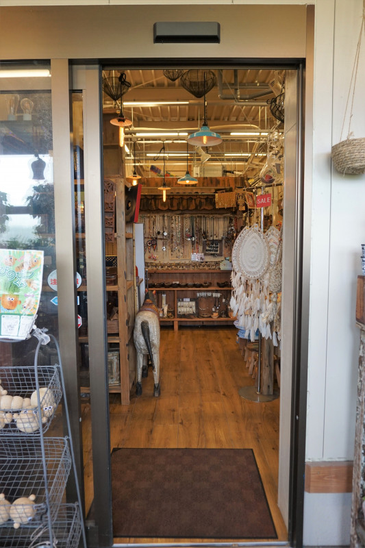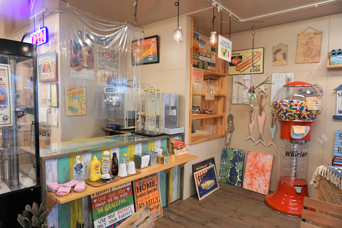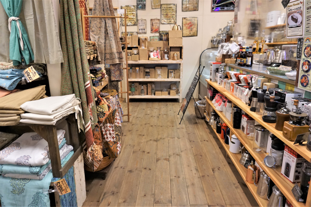 エスニックな雰囲気の雑貨店の中に、ハワイアンテイストなカフェ「Rainbow cafe」が併設されています。まるで海沿いのカフェでランチやコーヒータイム気分で、タコスや焼き加減もお客様の好みで1枚1枚丁寧に焼くワッフル、ガーリックシュリンプなどのお食事やデザートを食べることができます。自家焙煎機で焙煎された豆の購入も可能!!テイクアウトも行っていますので、ご自宅でもお楽しみください。