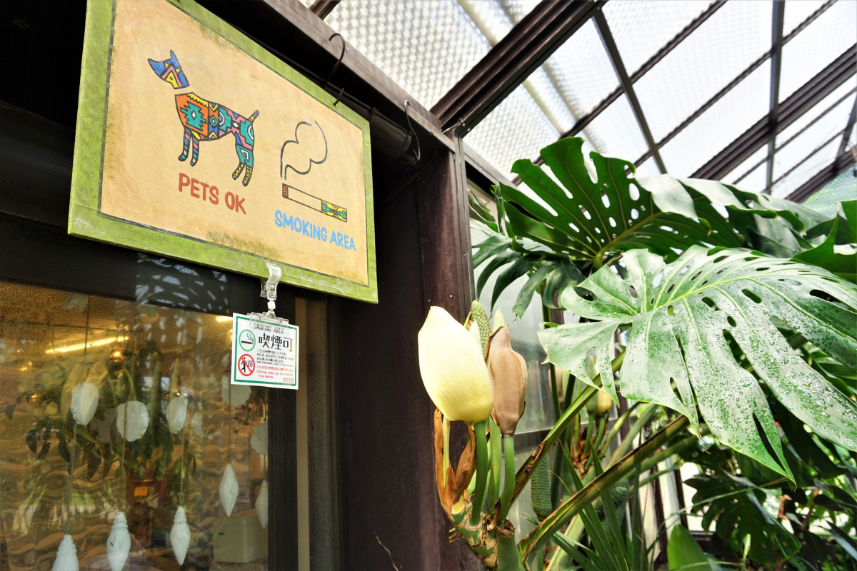 温室はカフェ利用の方のみ、ペット連れでの利用可能、喫煙スペースとしても利用可能