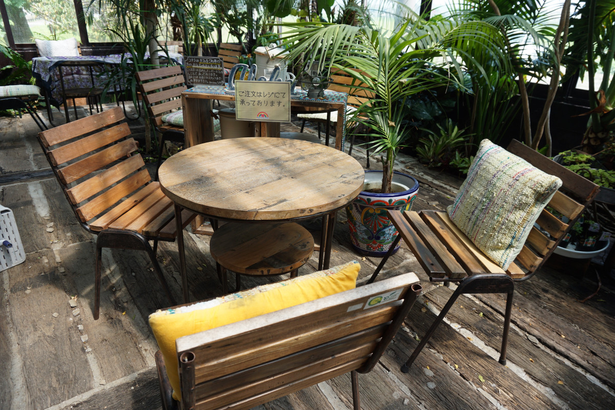 出入口前にスロープがございます。温室やテラスの出入口などは段差がありますが、店内は段差なくベビーカーのままや車いすなどでのご利用が可能です。カフェゾーンへの通路に下がるスロープがございます。カフェご利用の方のみ温室スペースが喫煙可能、ペット連れでのご利用可能ですのでご利用ください。テイクアウト利用も可能です。