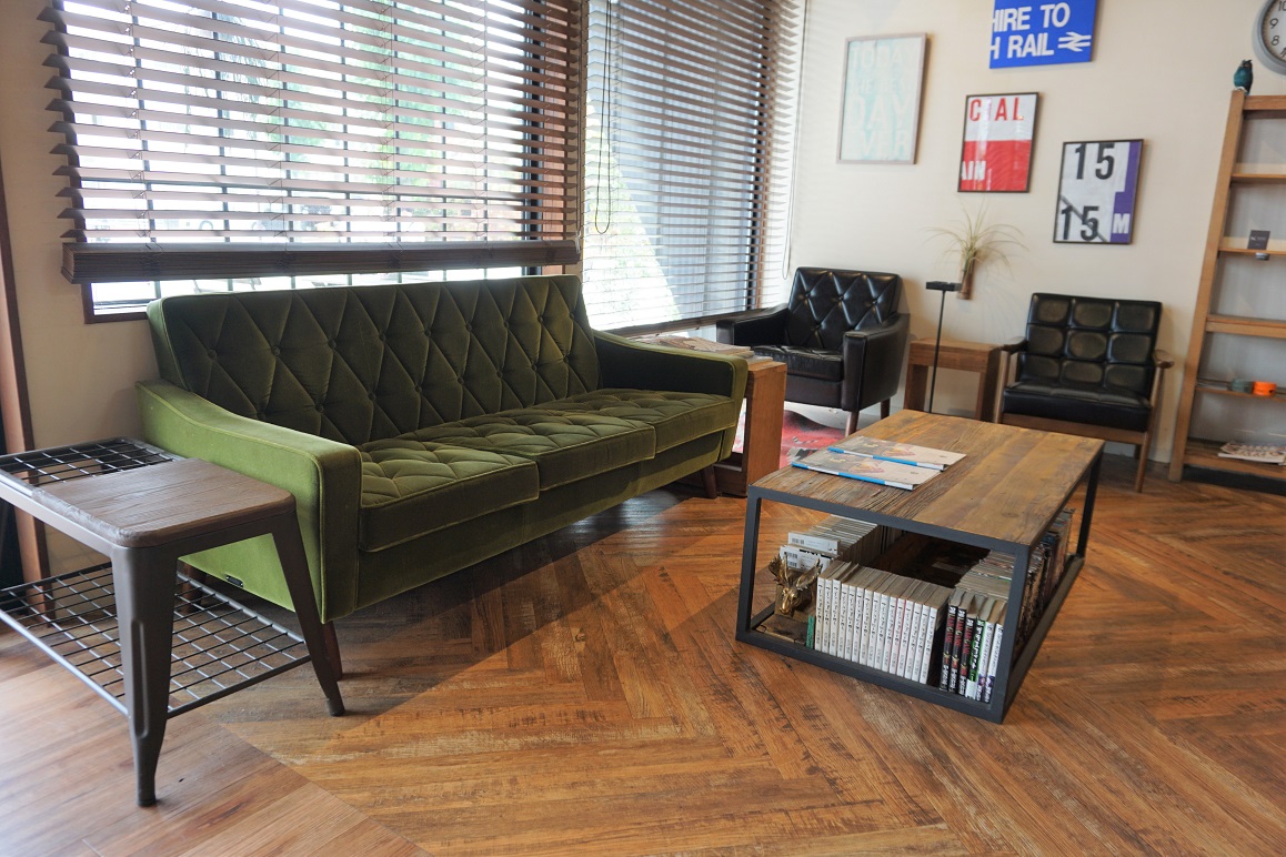 カット面の椅子はバルセロナチェアでゆったりとお座りいただけます。