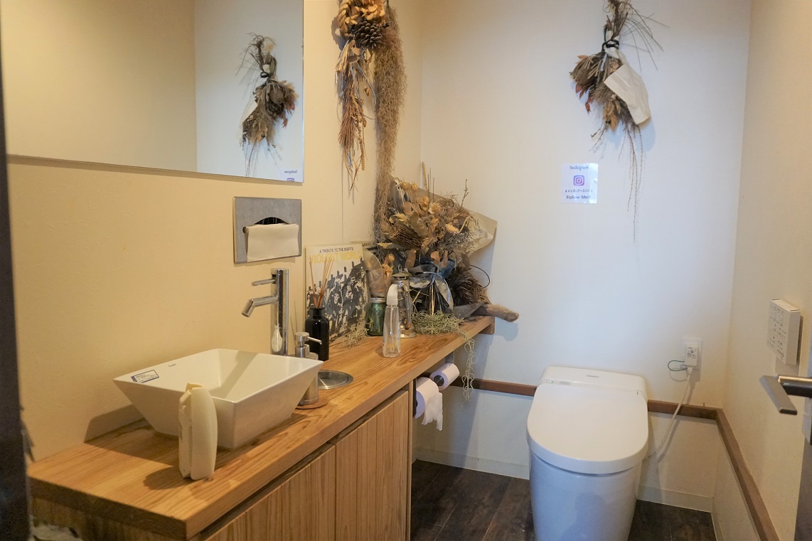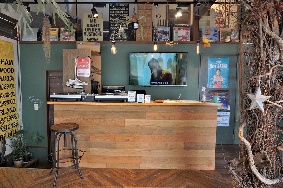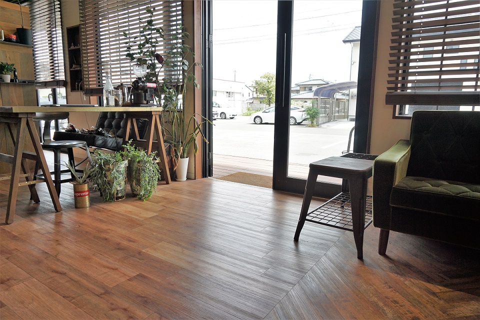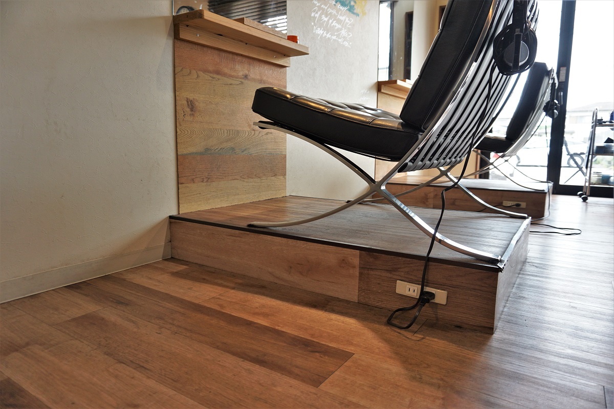 店舗入り口の前にはウッドデッキがあり入店までに3段の段差があります。屋内は解放感たっぷりの空間が広がります。カット面やシャンプーコーナーへの通路、トイレに段差があります。必要な方はできる限りお手伝いいたしますので、お声掛けください。